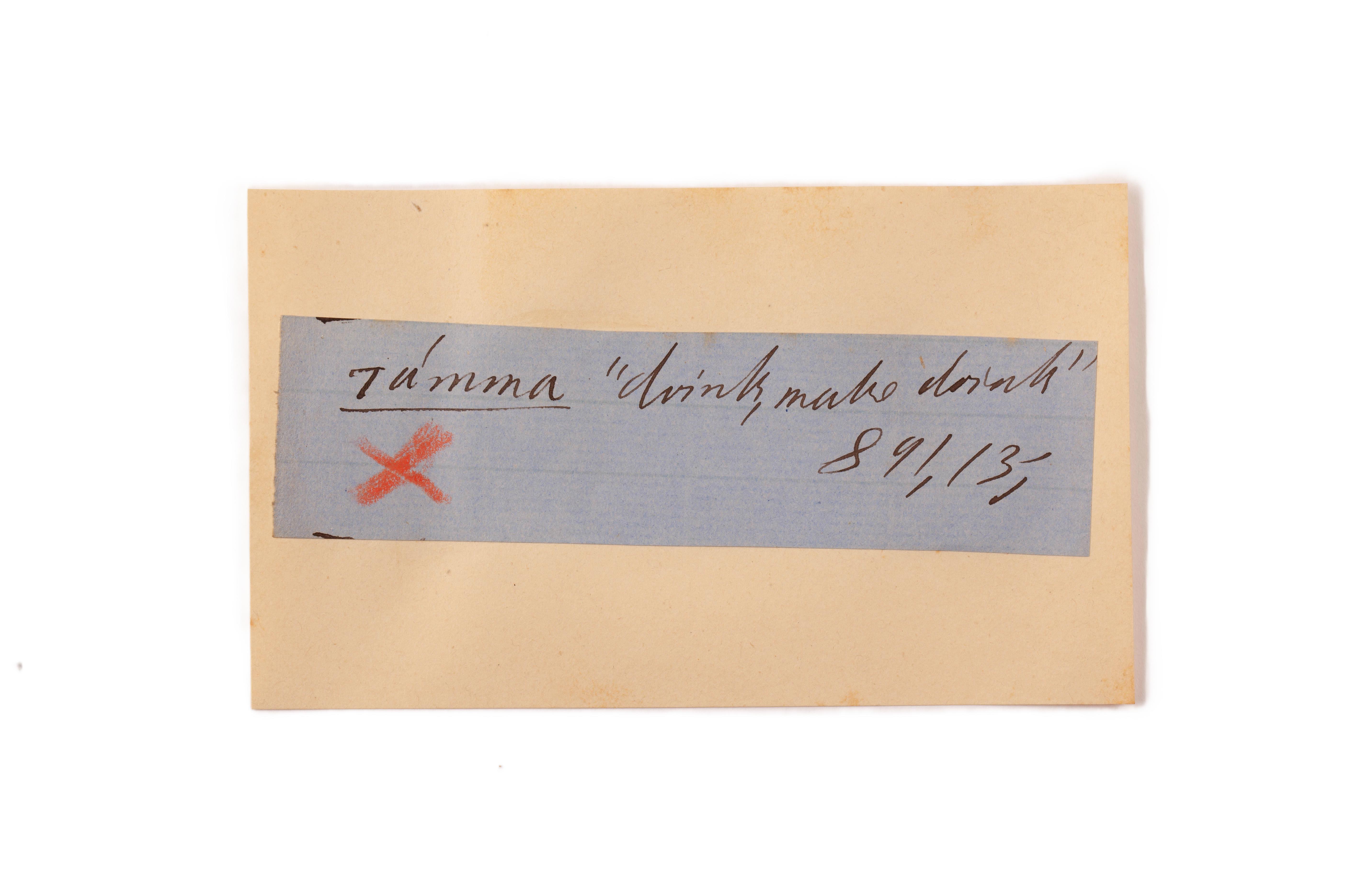 ink on blue paper glued on card