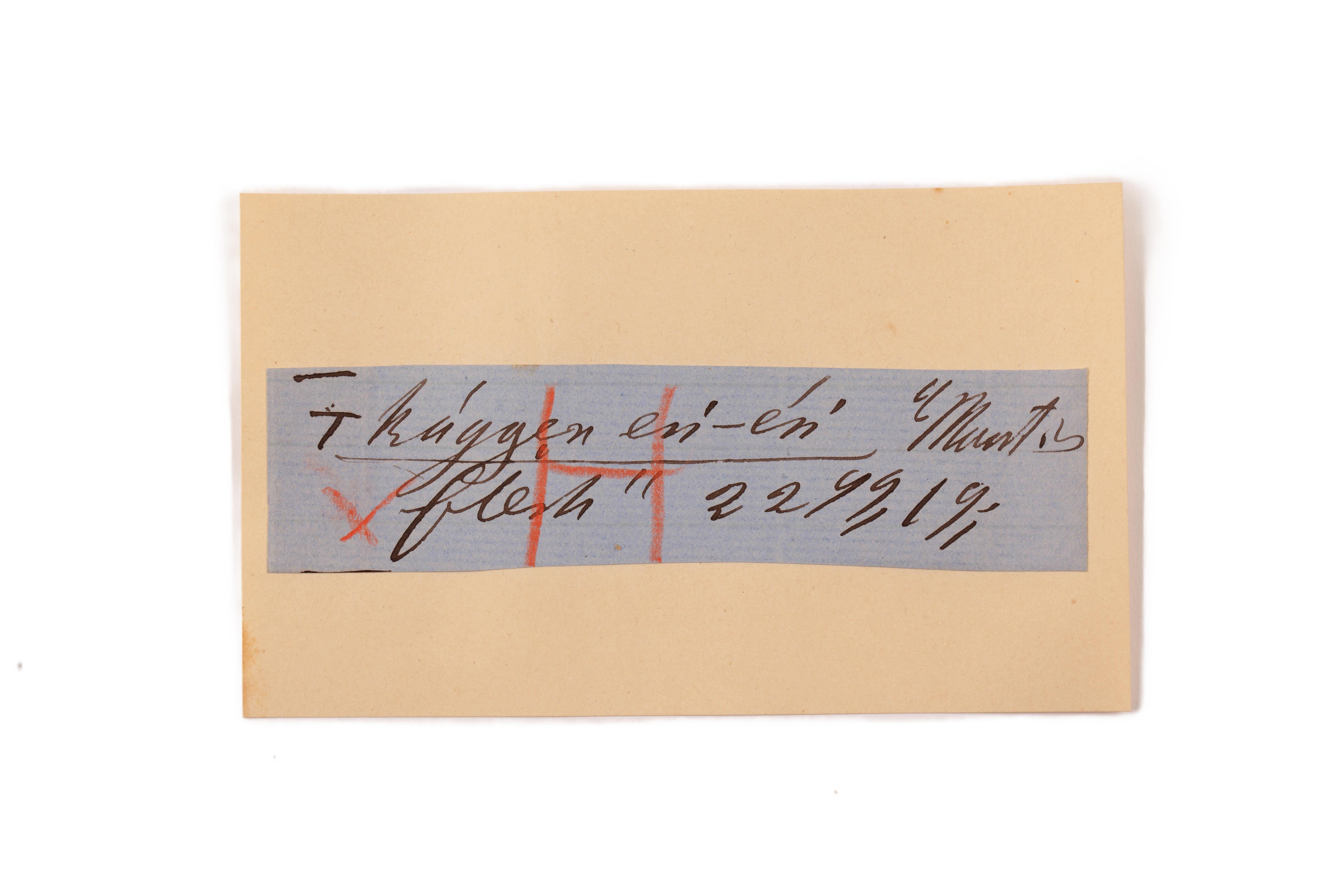 ink on blue paper glued on card