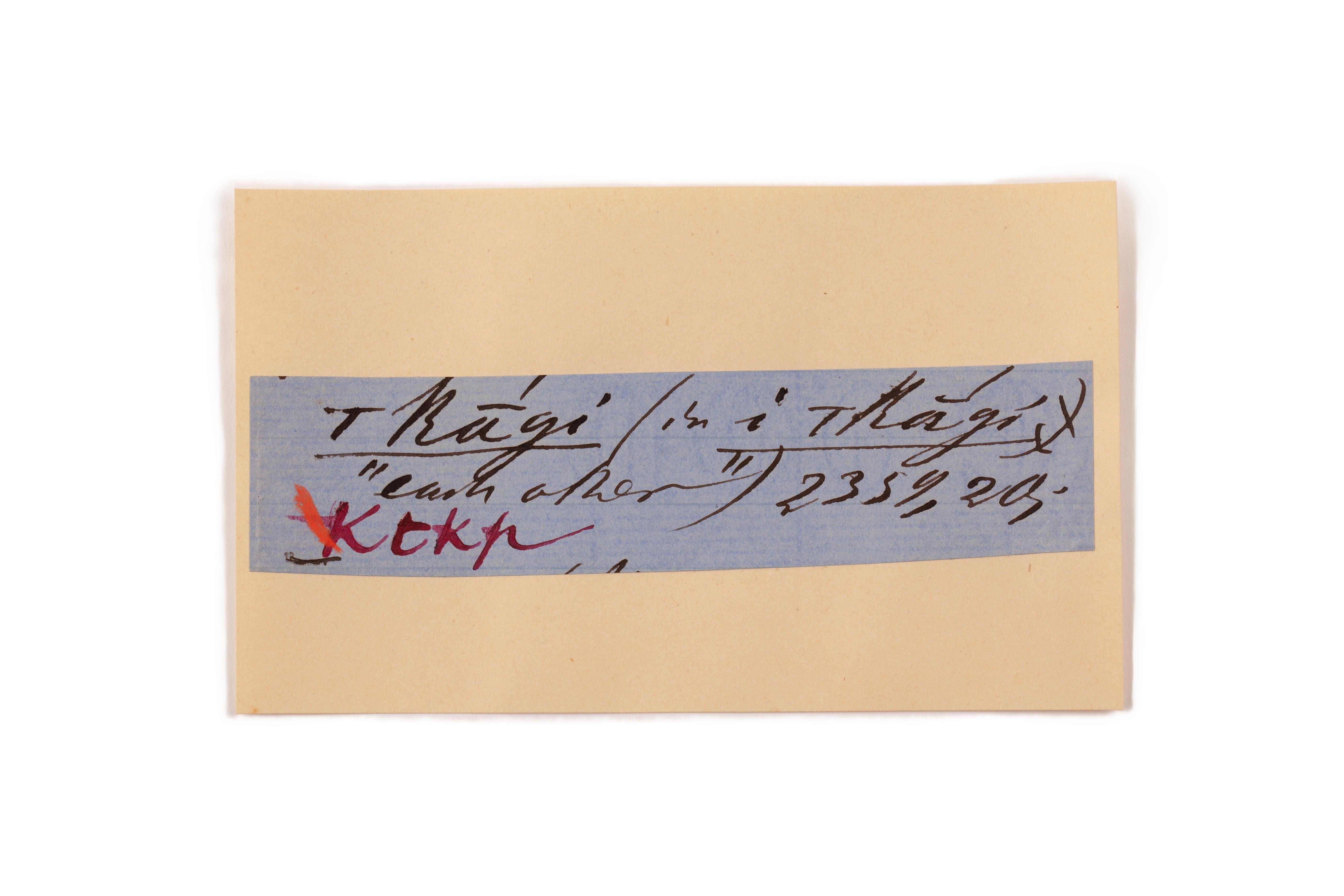 ink on blue paper glued on card