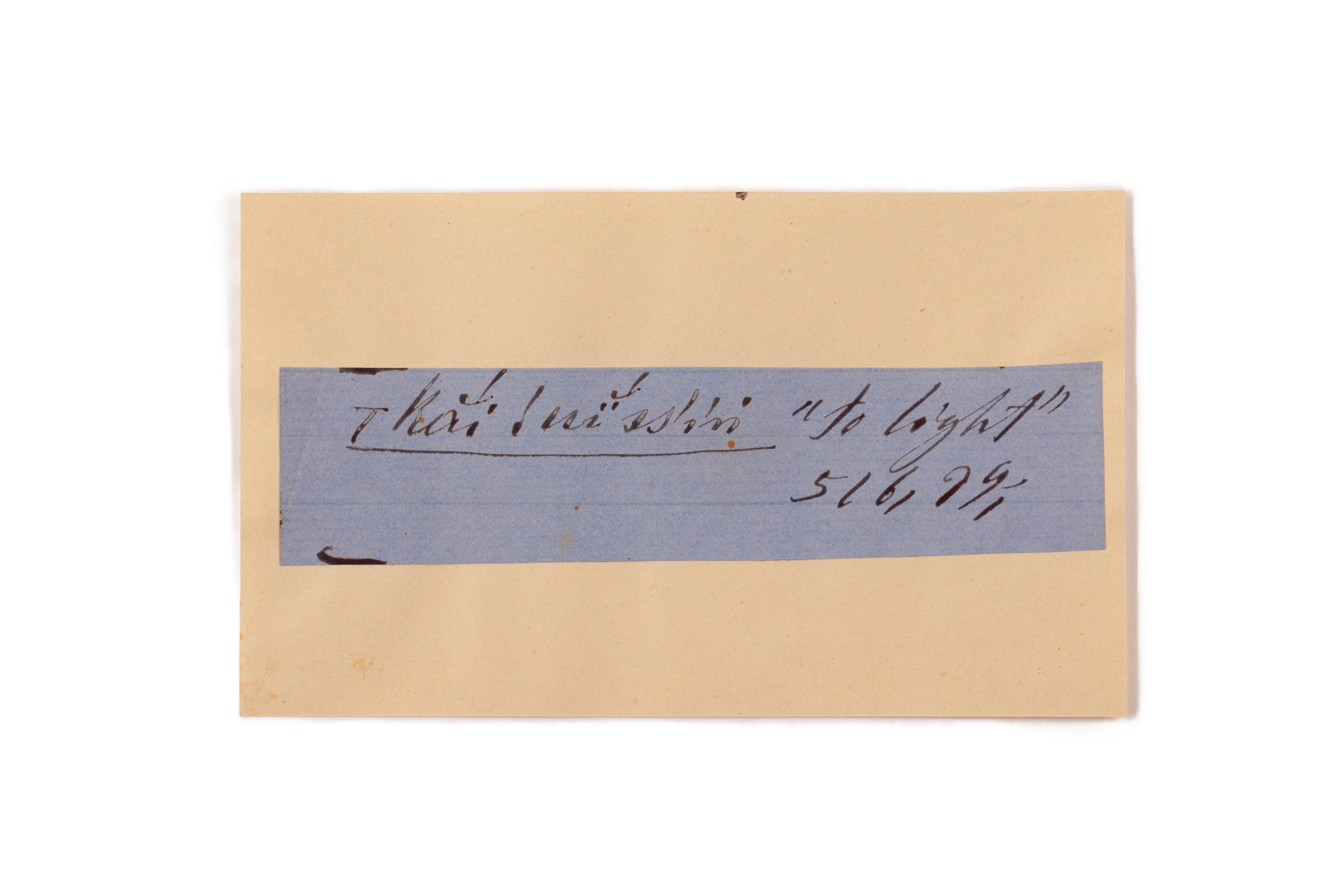 ink on blue paper glued on card