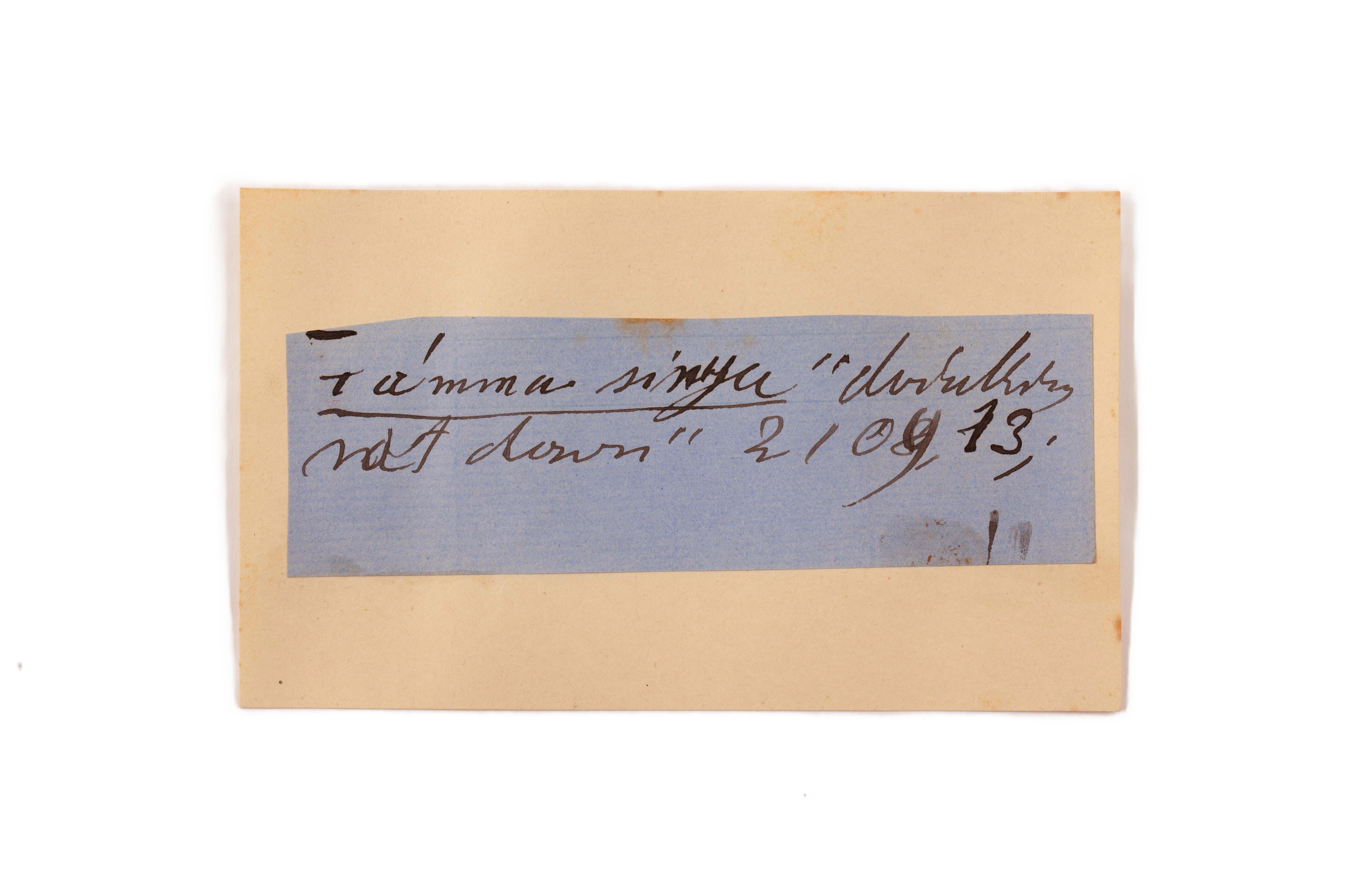 ink on blue paper glued on card