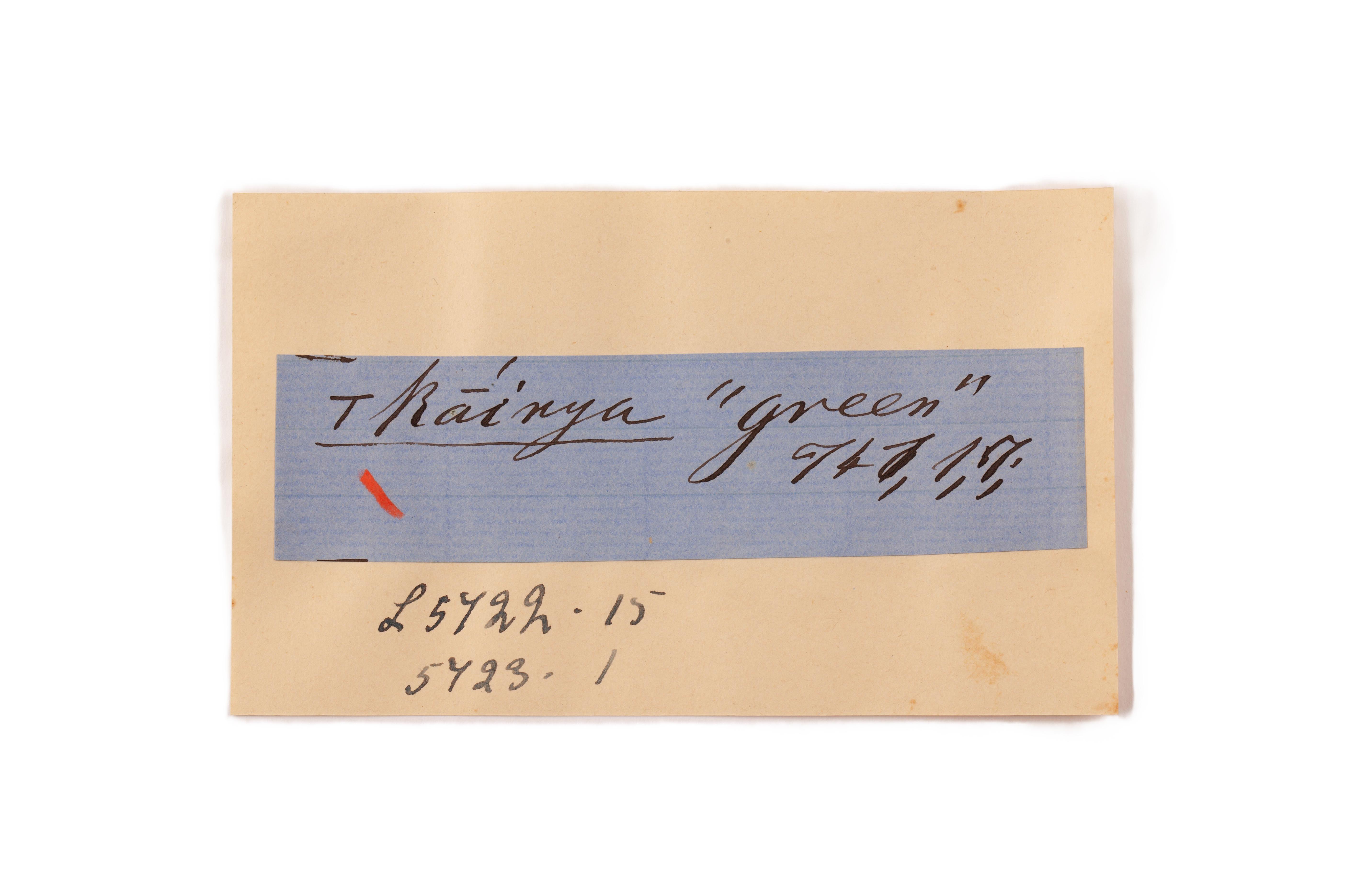 ink on blue paper glued on card