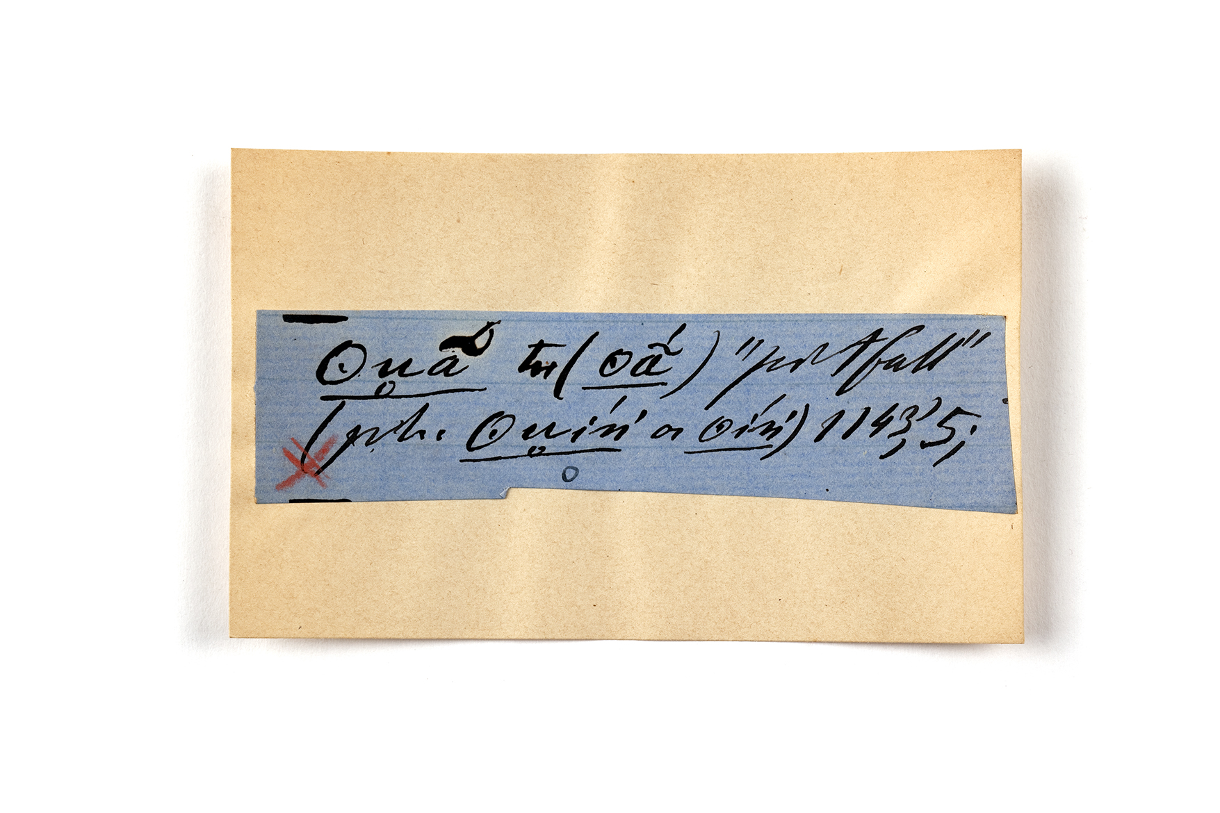 ink on blue paper glued on card