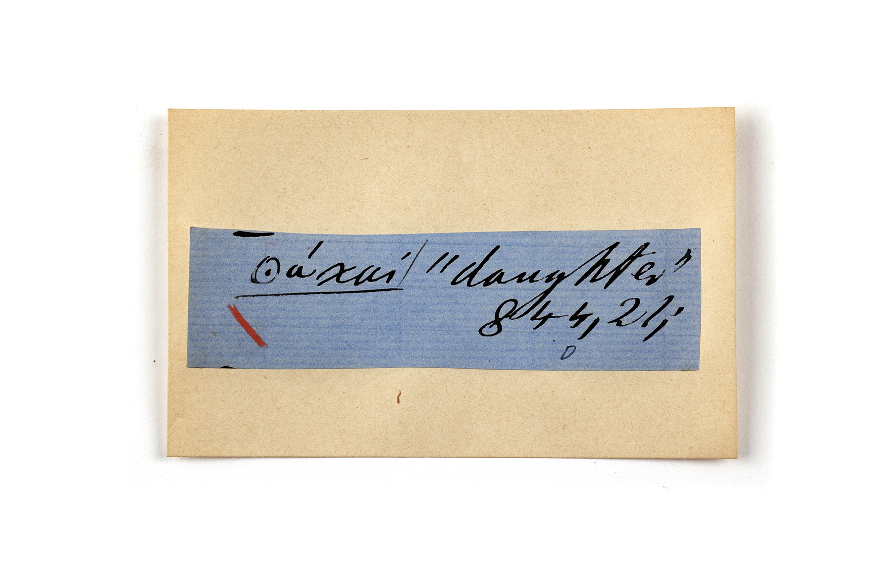 ink on blue paper glued on card