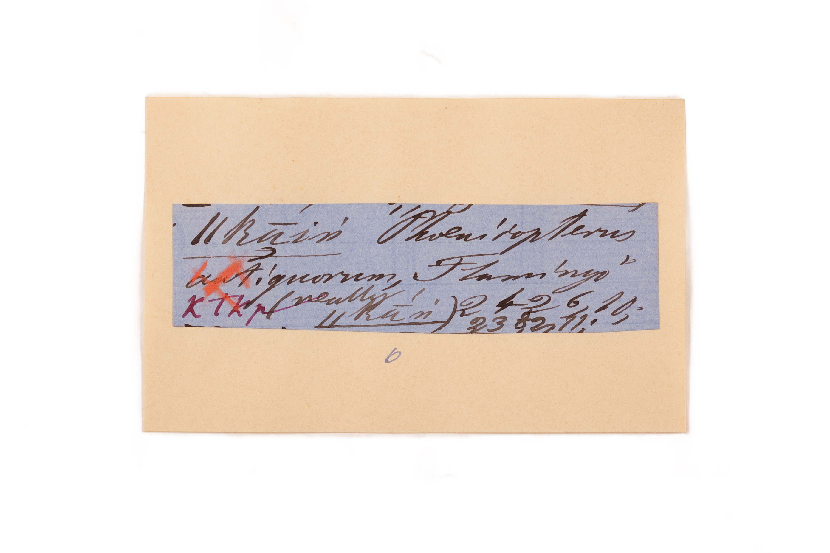 ink on blue paper glued on card