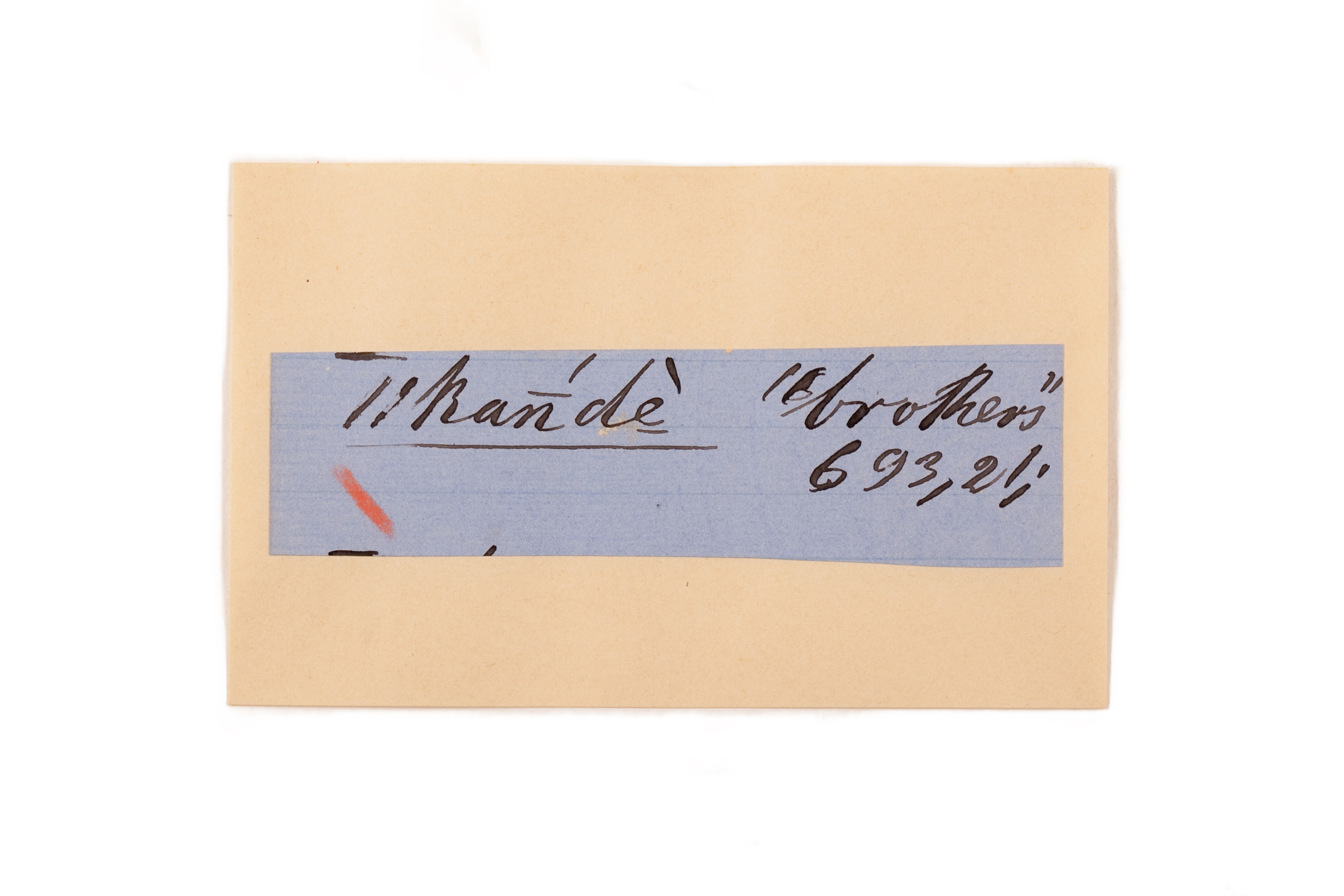 ink on blue paper glued on card