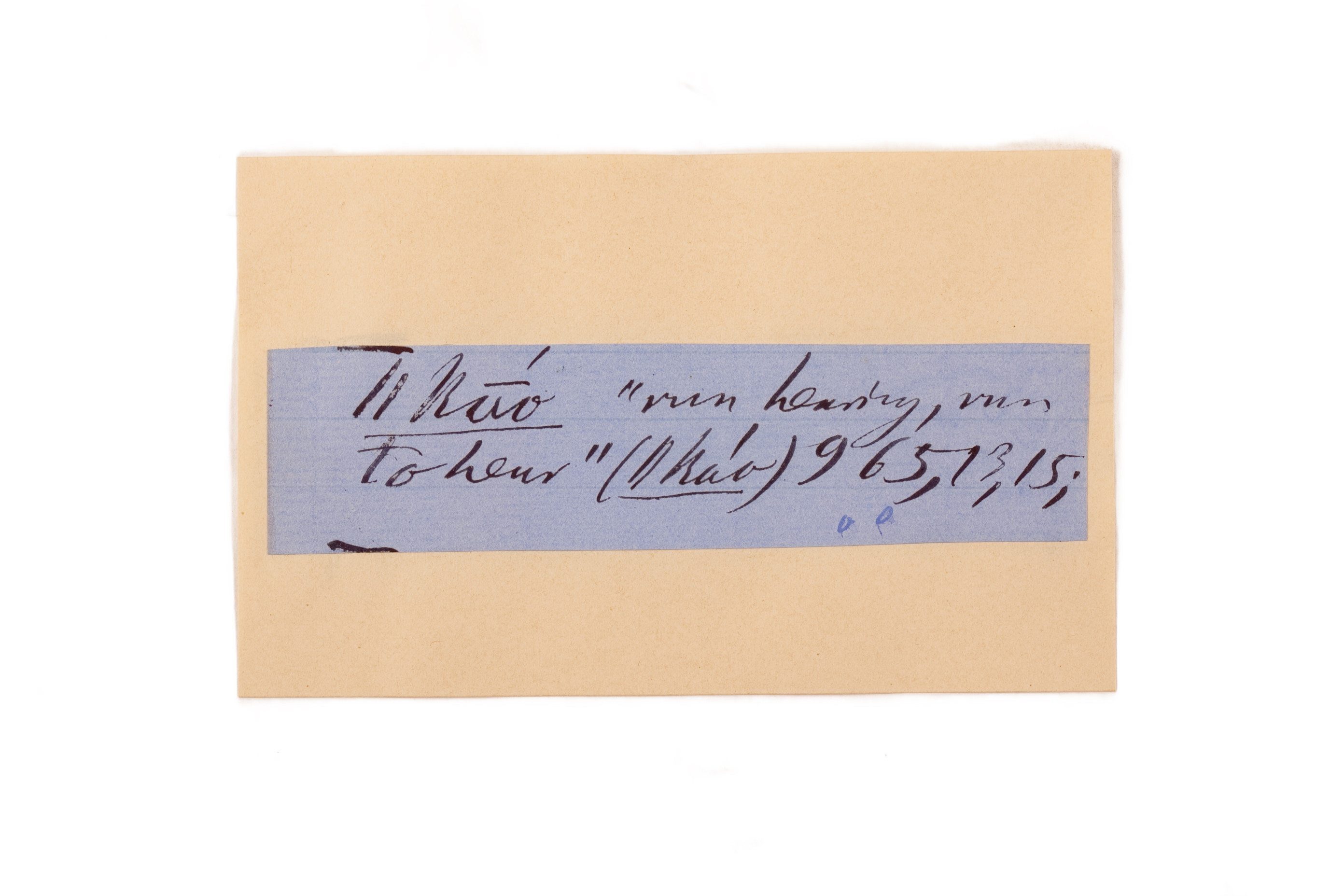 ink on blue paper glued on card