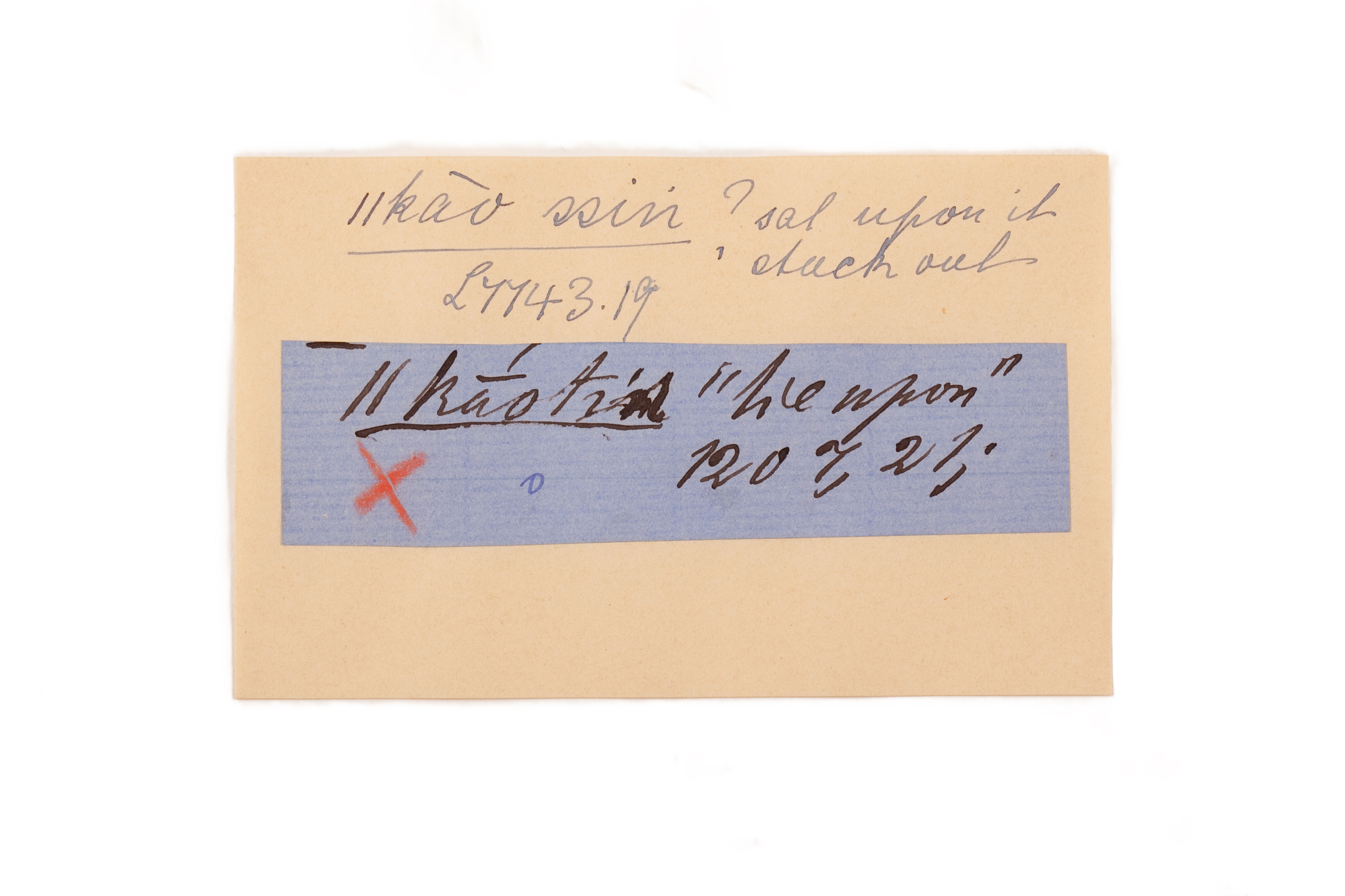 ink on blue paper glued on card
