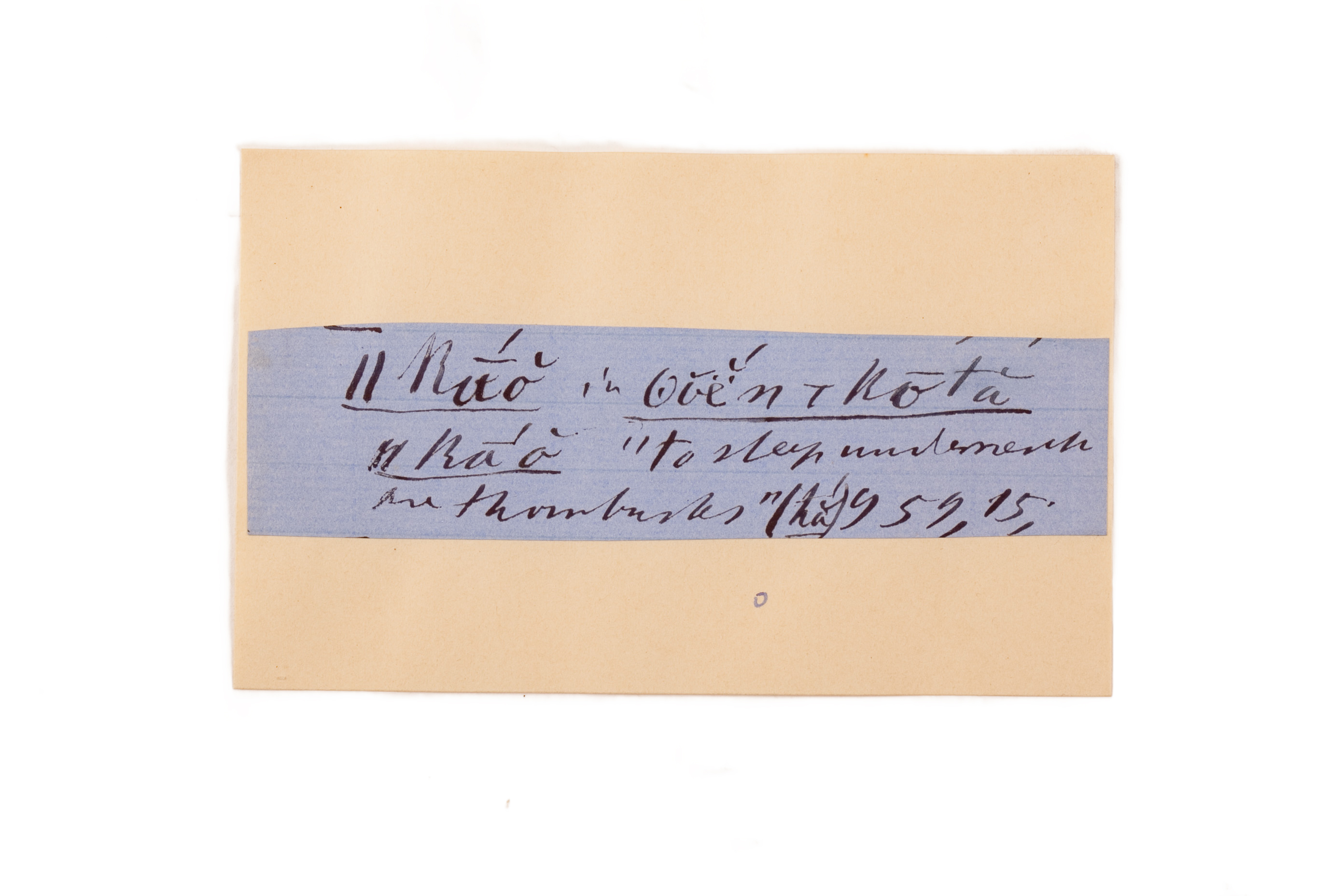 ink on blue paper glued on card