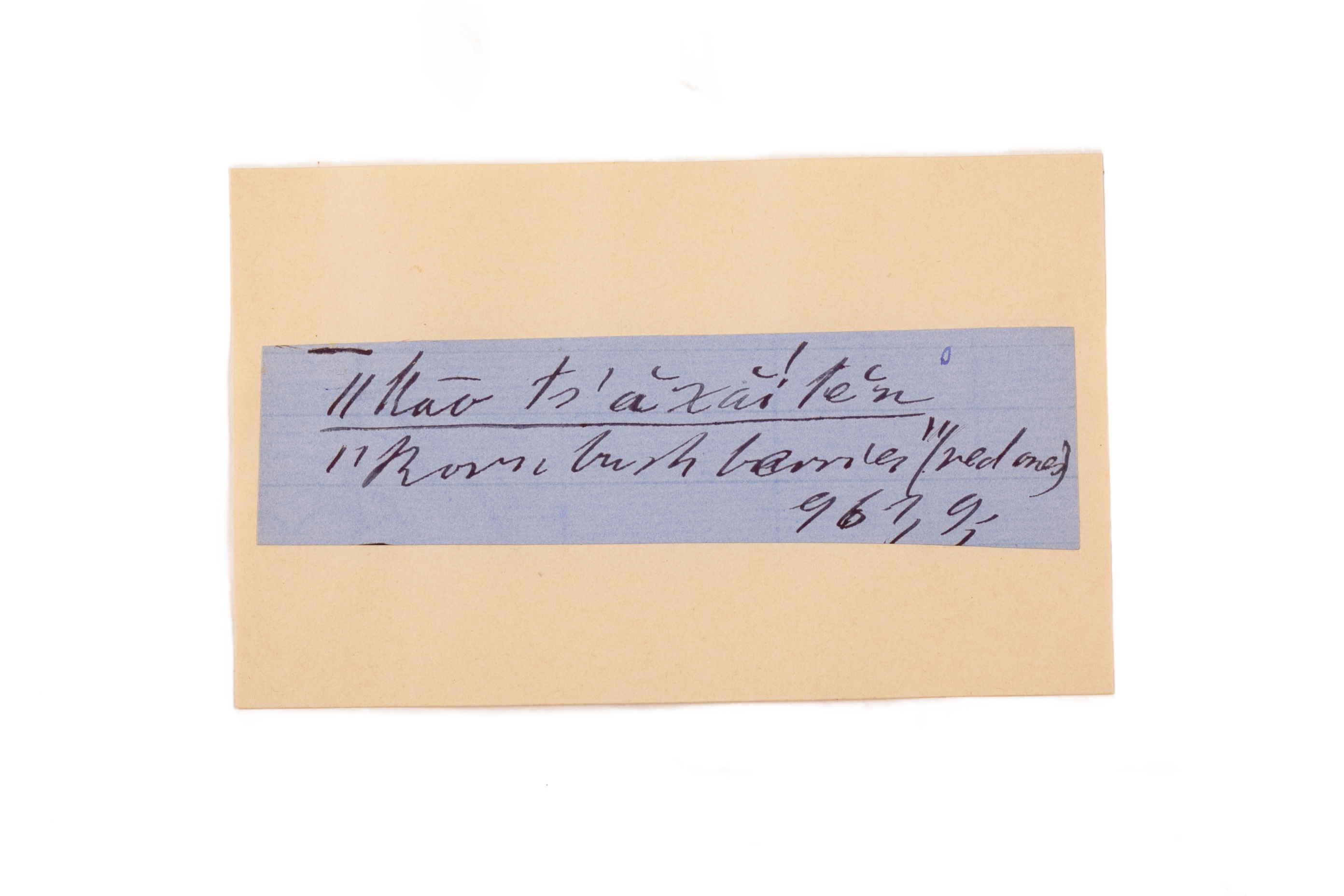 ink on blue paper glued on card