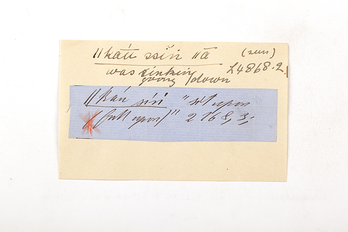 ink on blue paper glued on card
