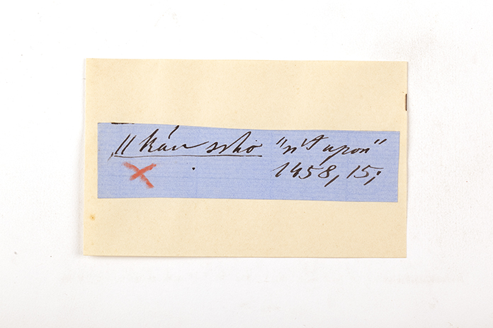 ink on blue paper glued on card