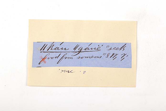 ink on blue paper glued on card