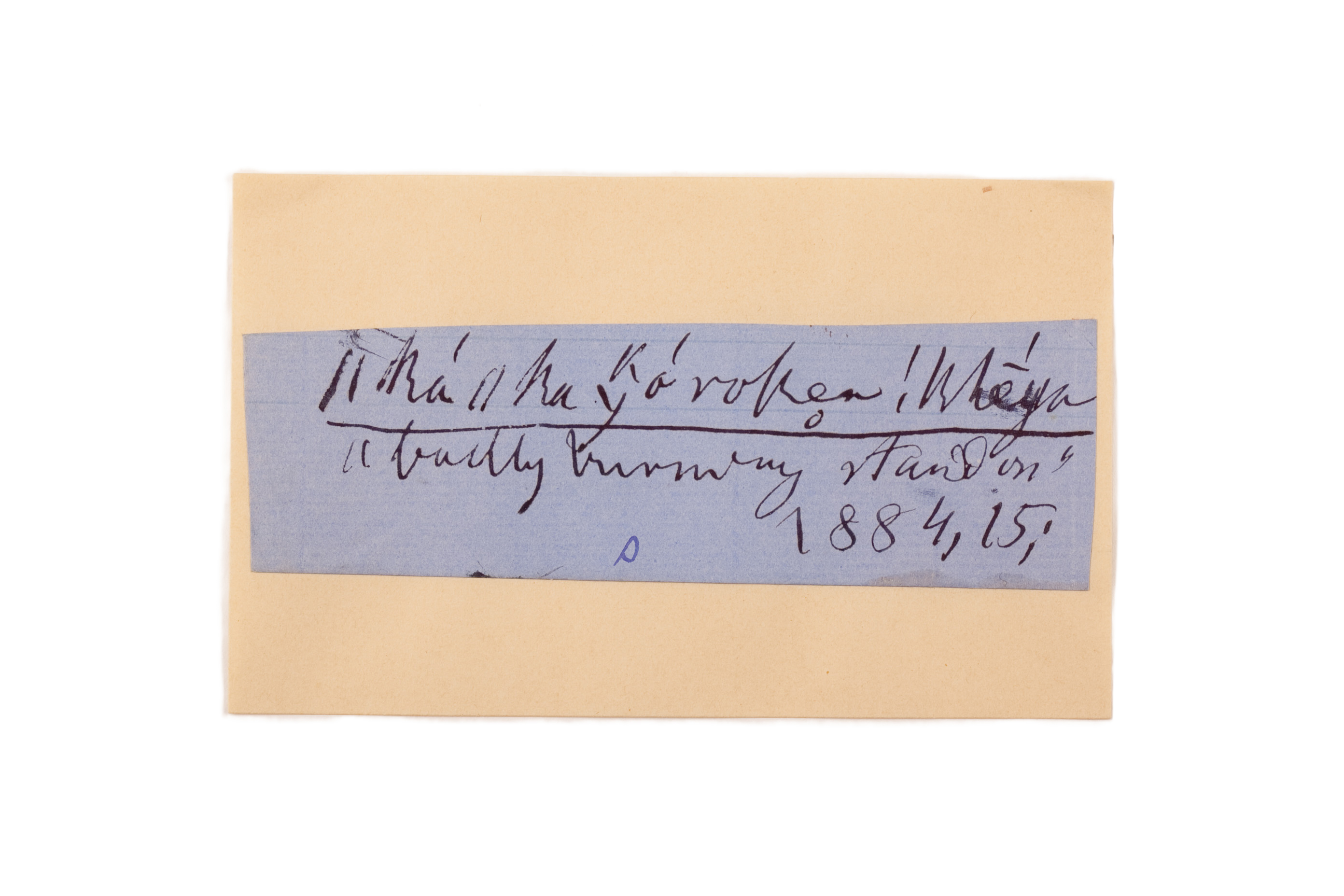 ink on blue paper glued on card