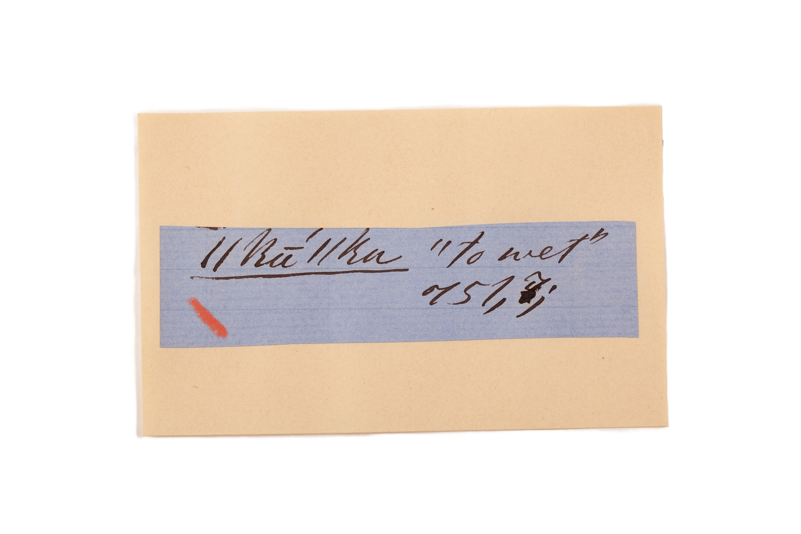 ink on blue paper glued on card