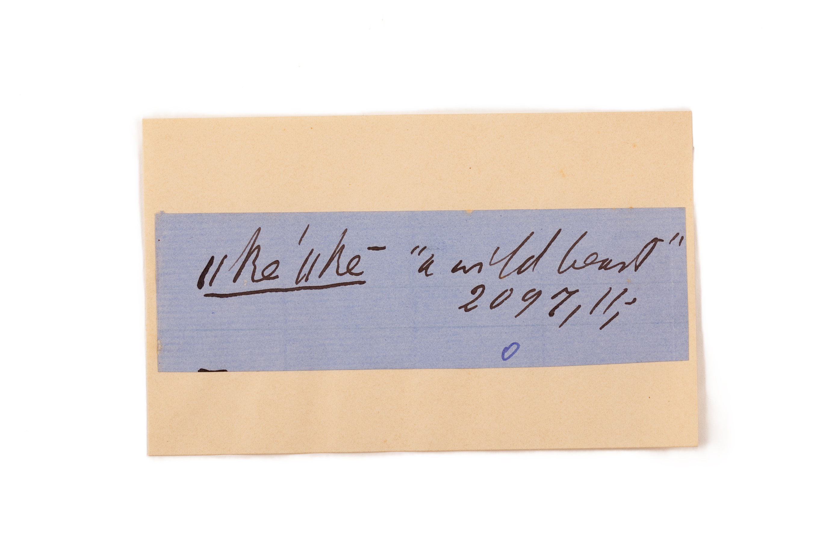 ink on blue paper glued on card