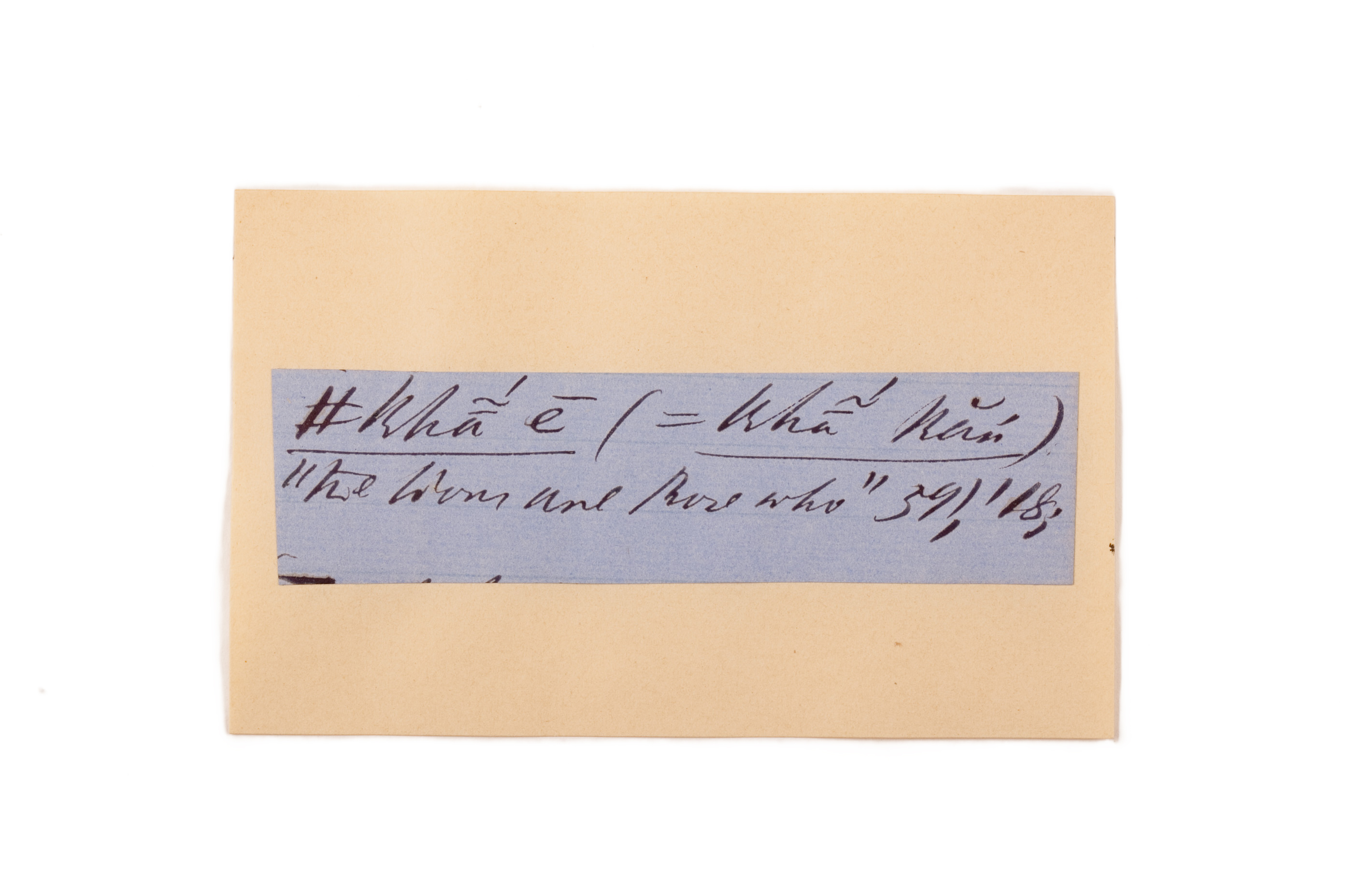 ink on blue paper glued on card