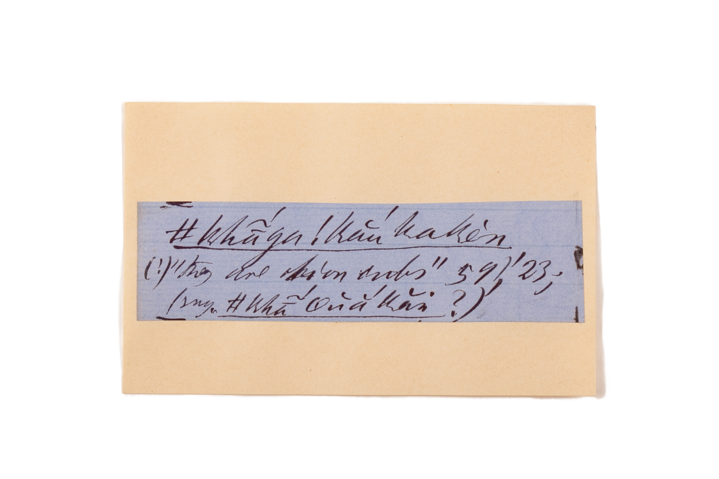 ink on blue paper glued on card