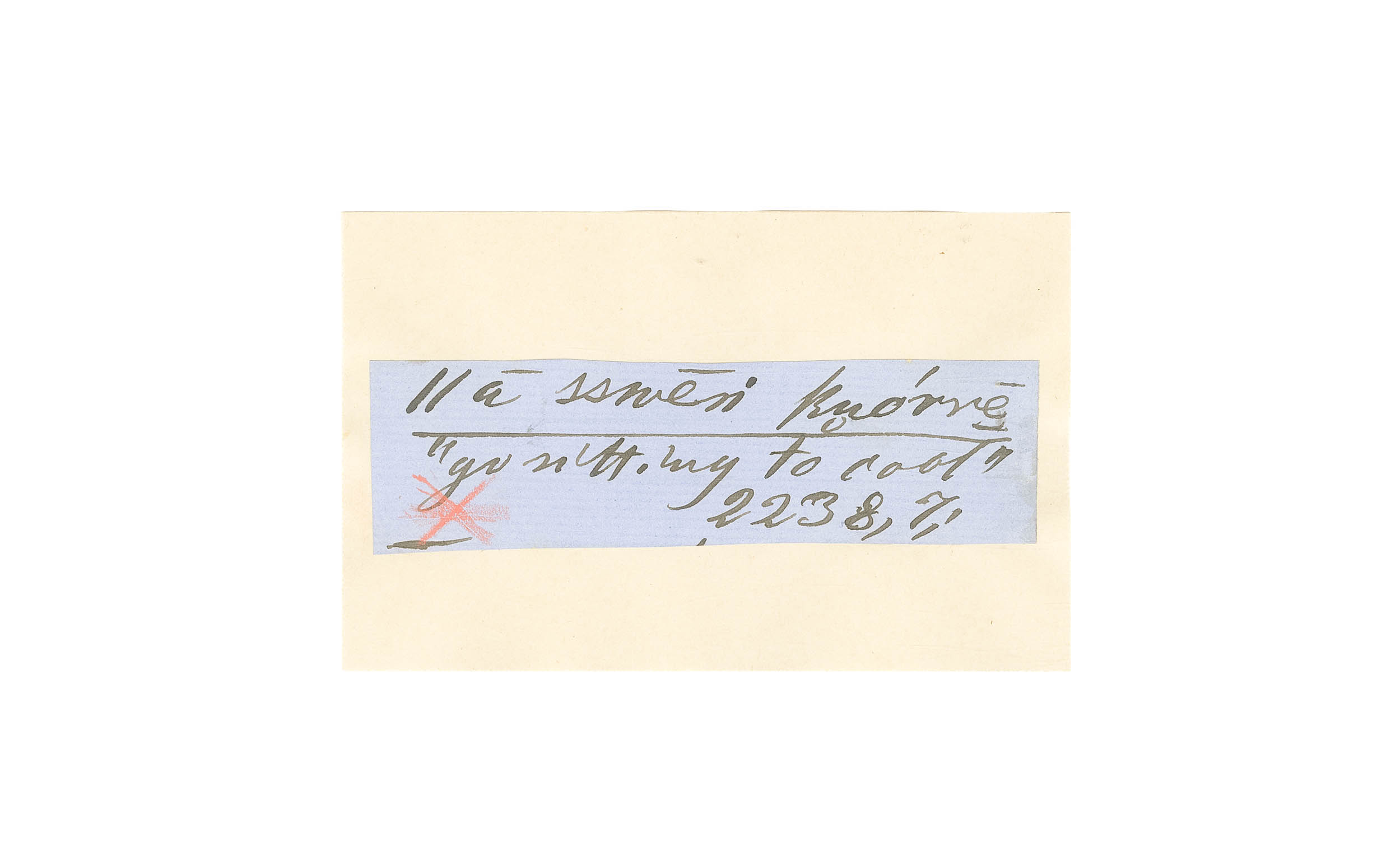 ink on blue paper glued on card