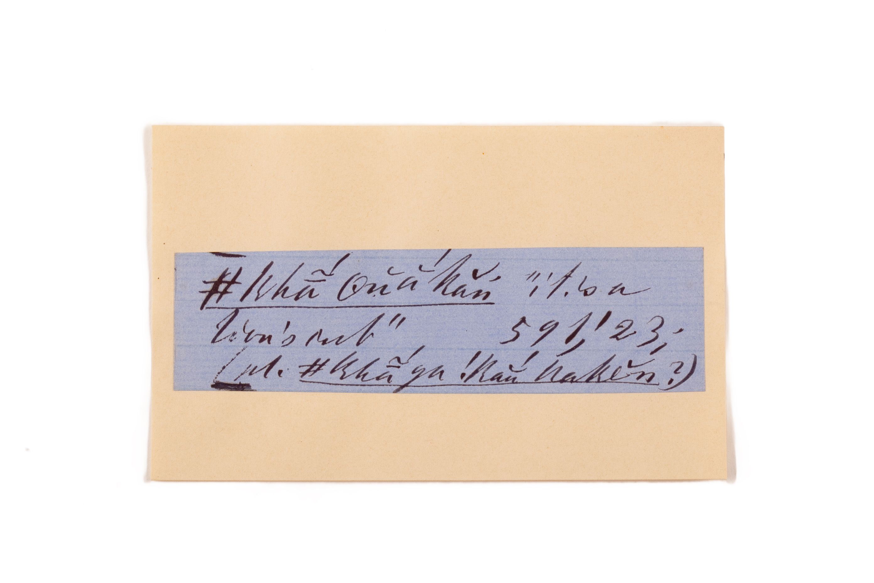 ink on blue paper glued on card