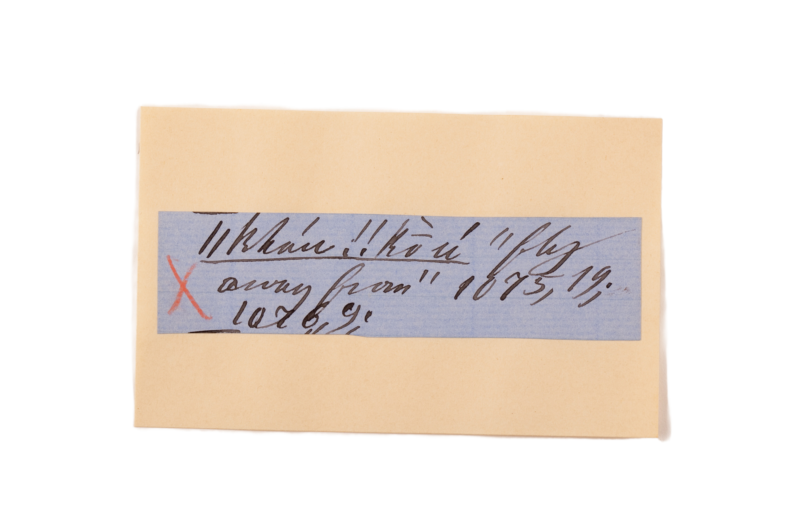 ink on blue paper glued on card