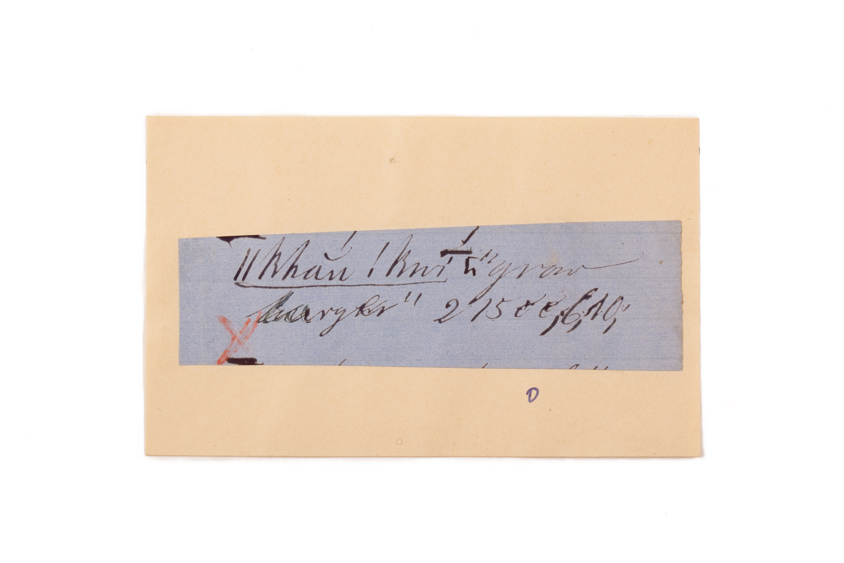 ink on blue paper glued on card