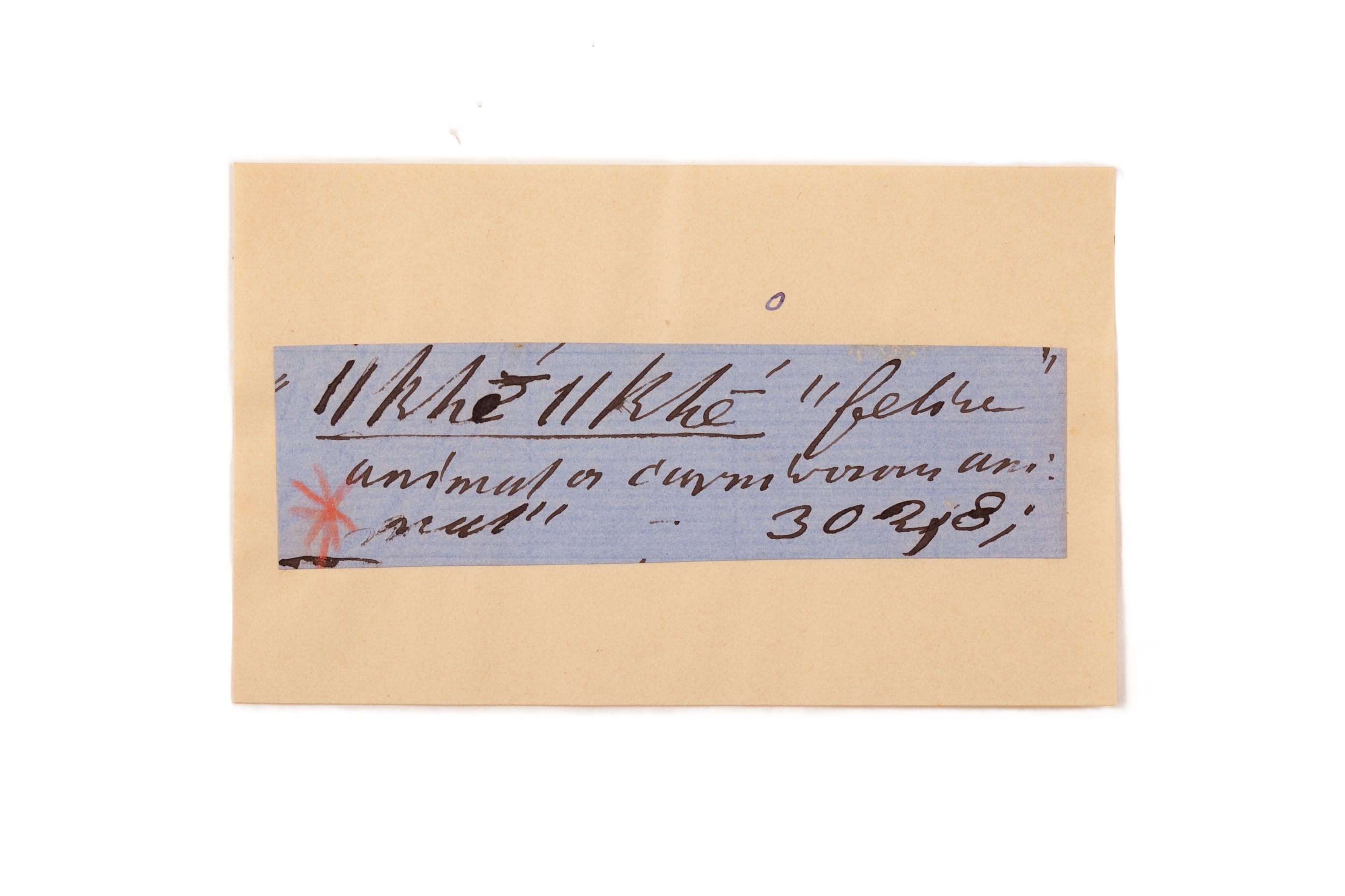 ink on blue paper glued on card