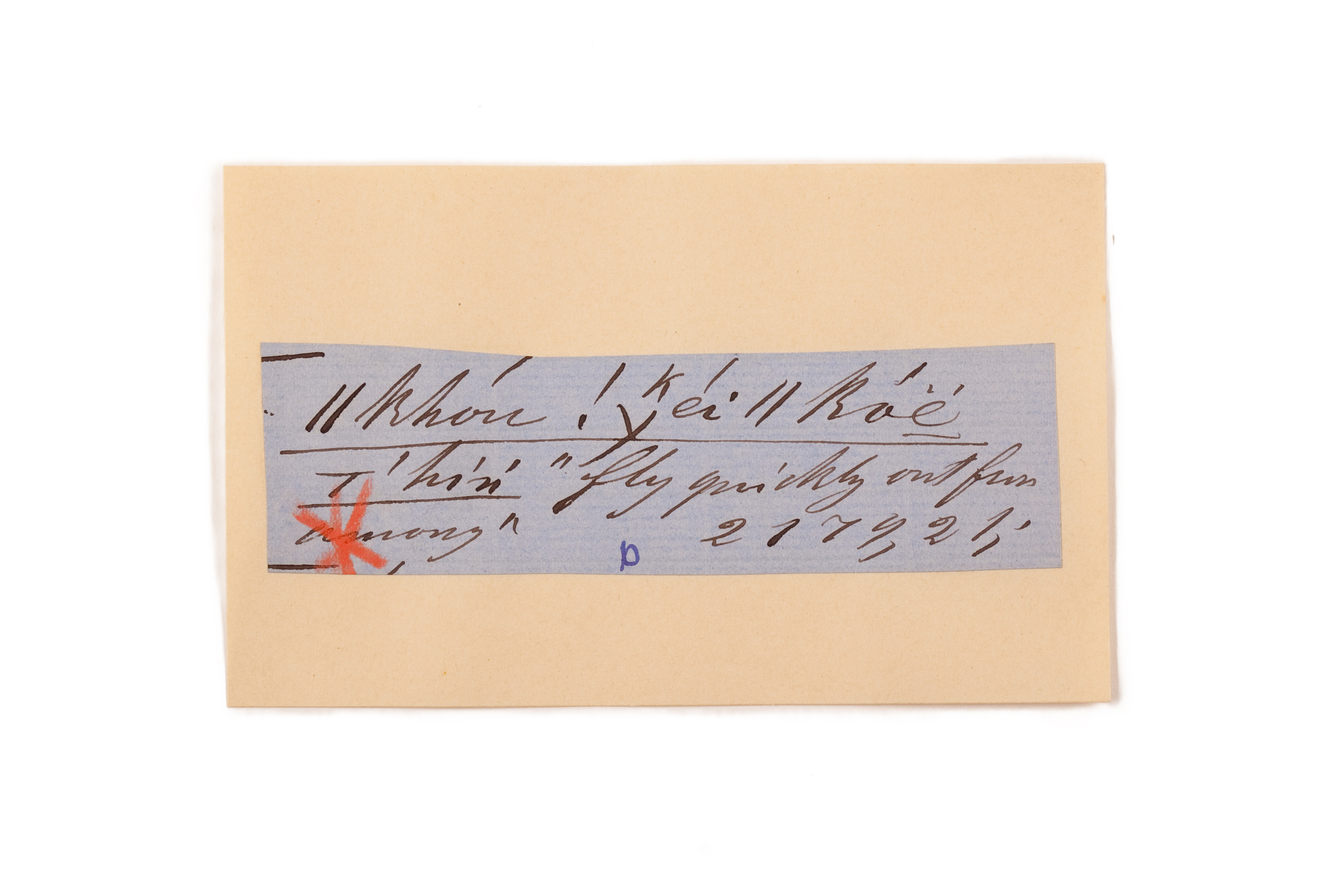 ink on blue paper glued on card