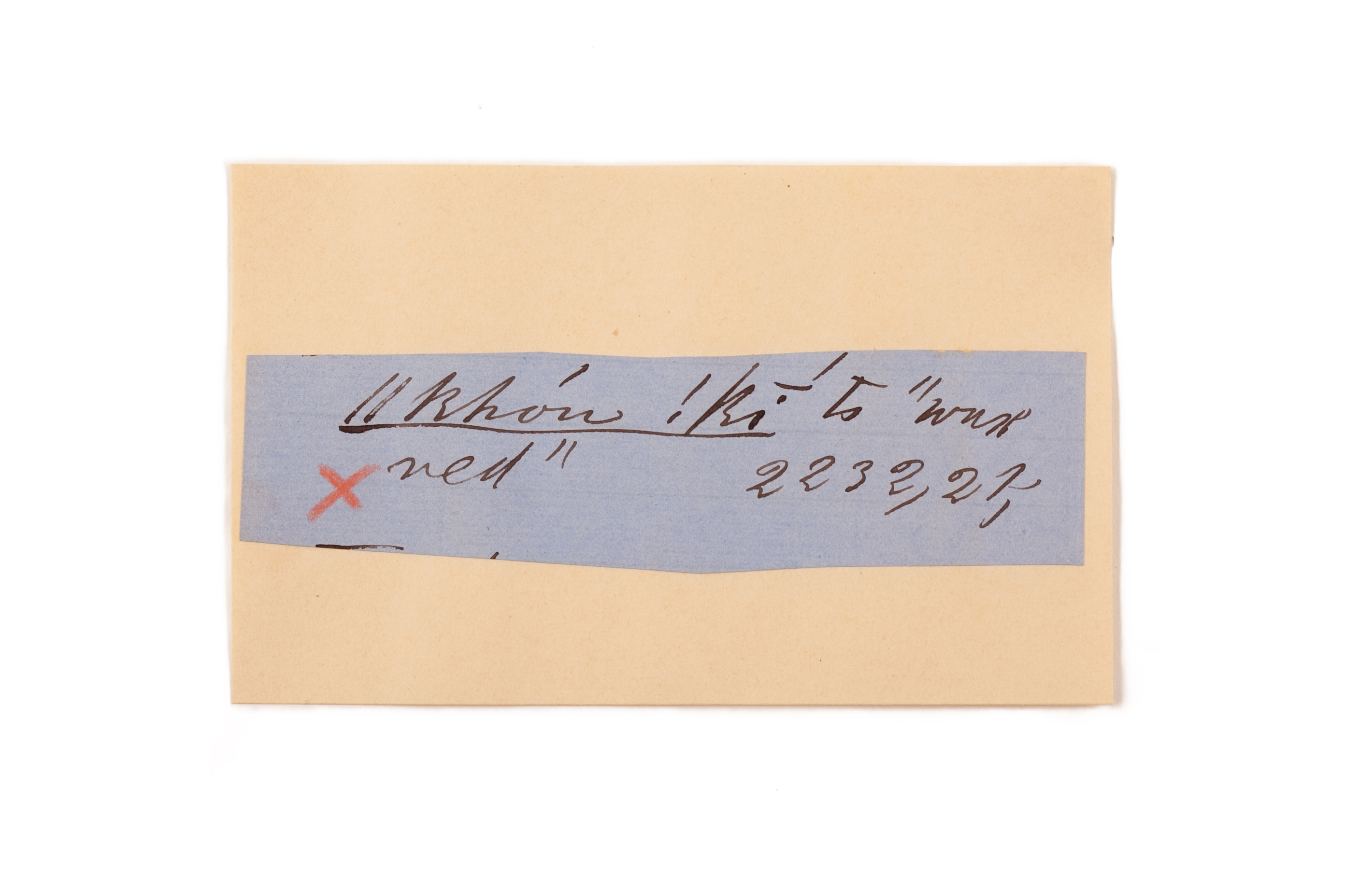 ink on blue paper glued on card