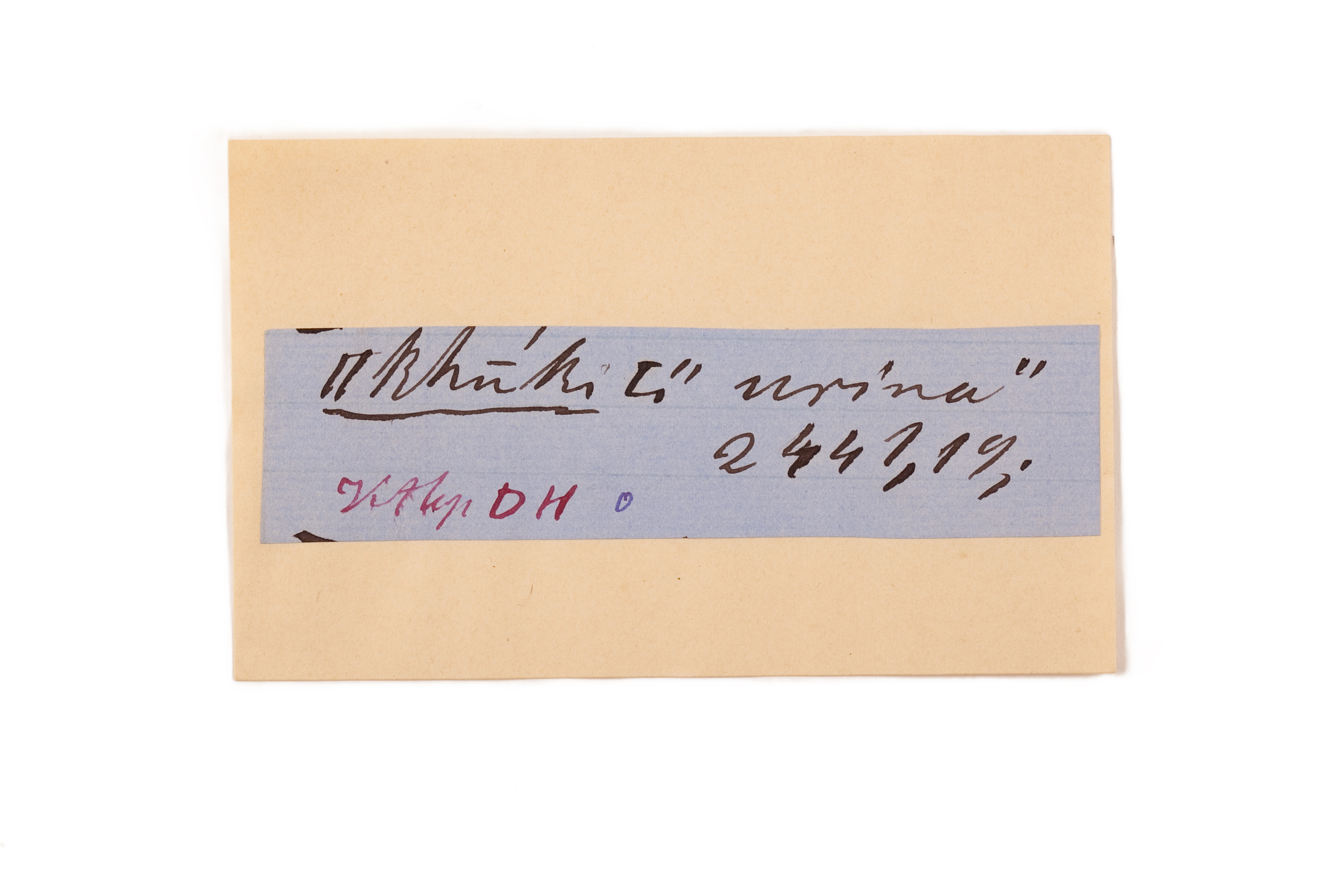 ink on blue paper glued on card
