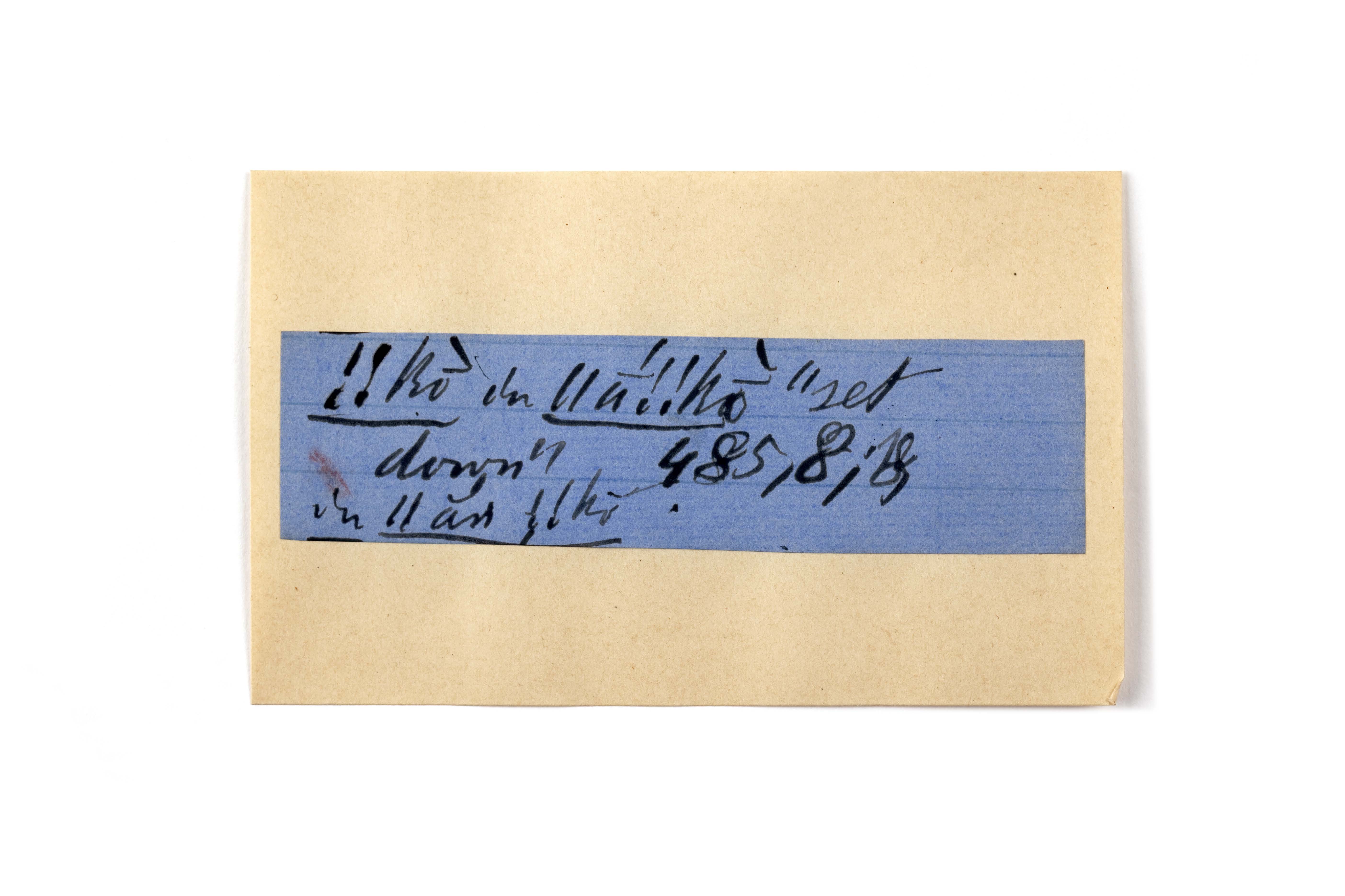 ink on blue paper glued on card