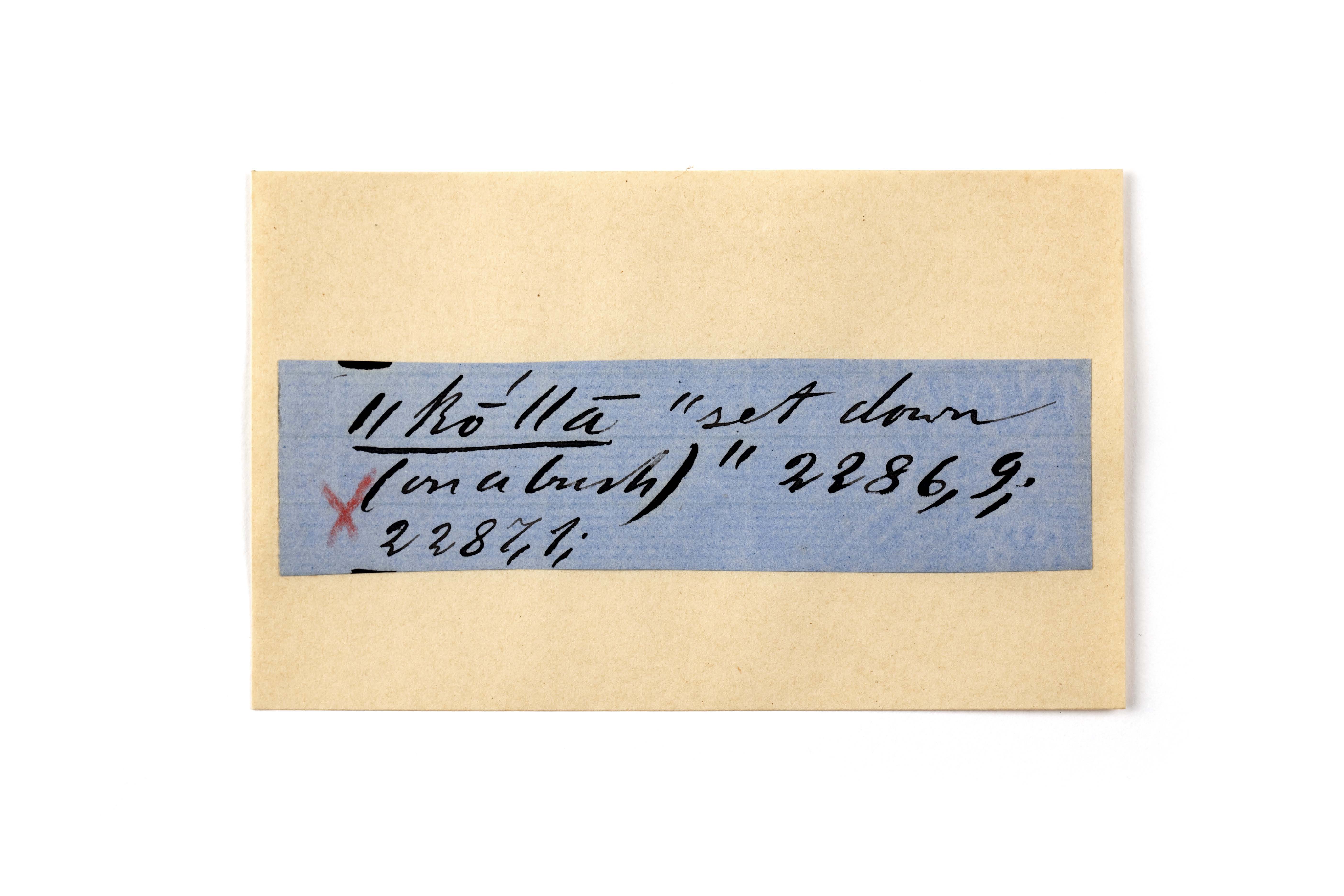ink on blue paper glued on card