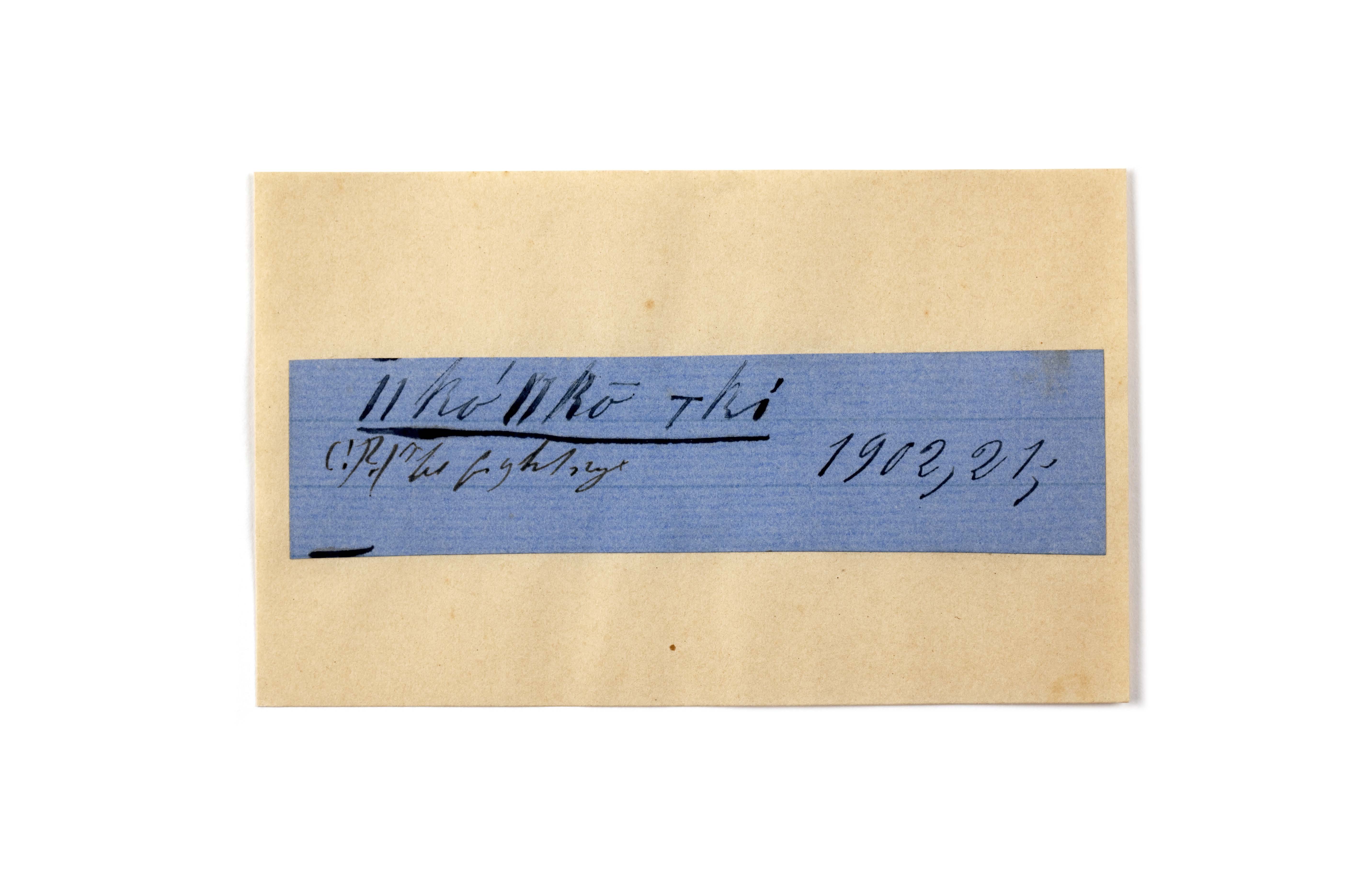 ink on blue paper glued on card