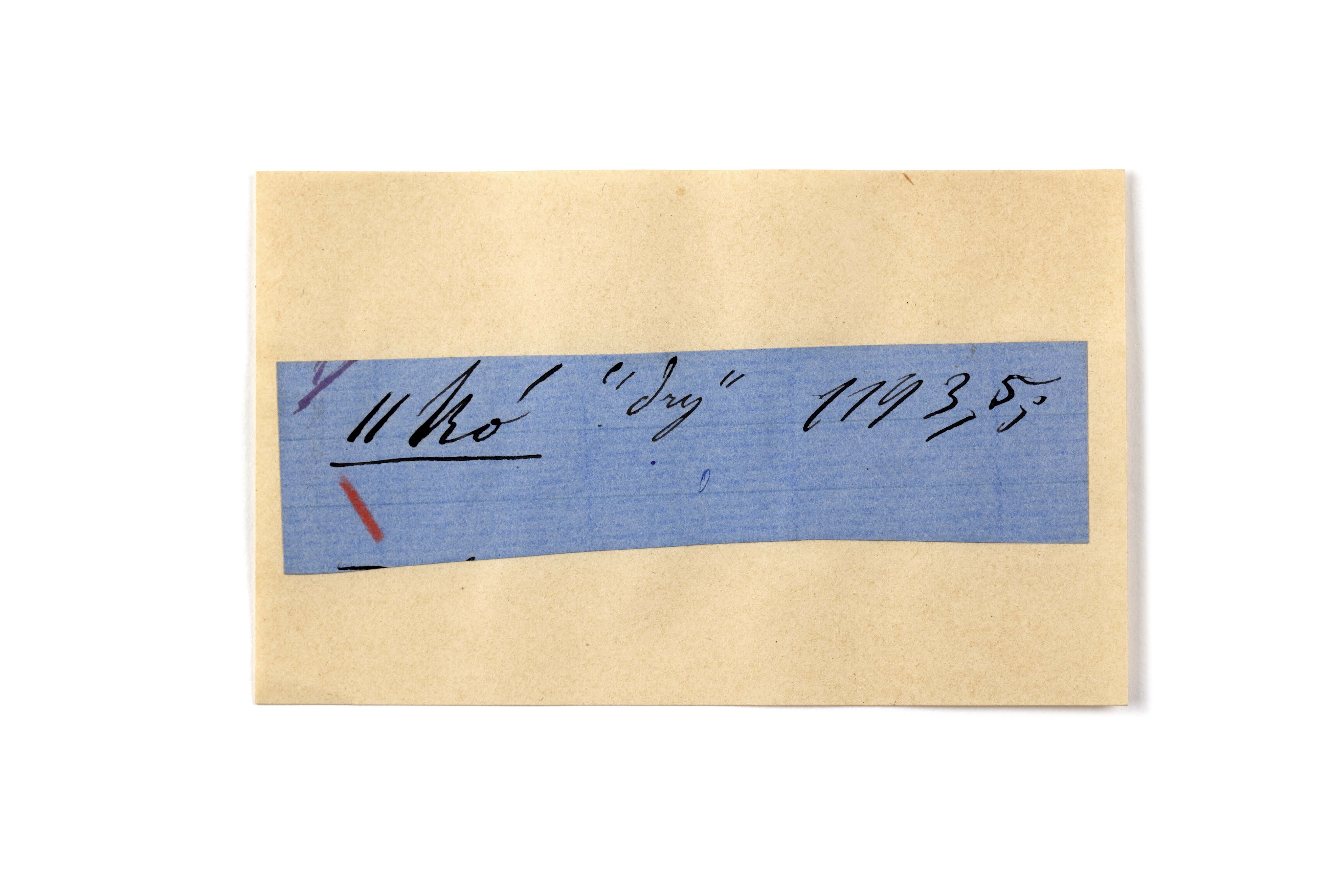 ink on blue paper glued on card