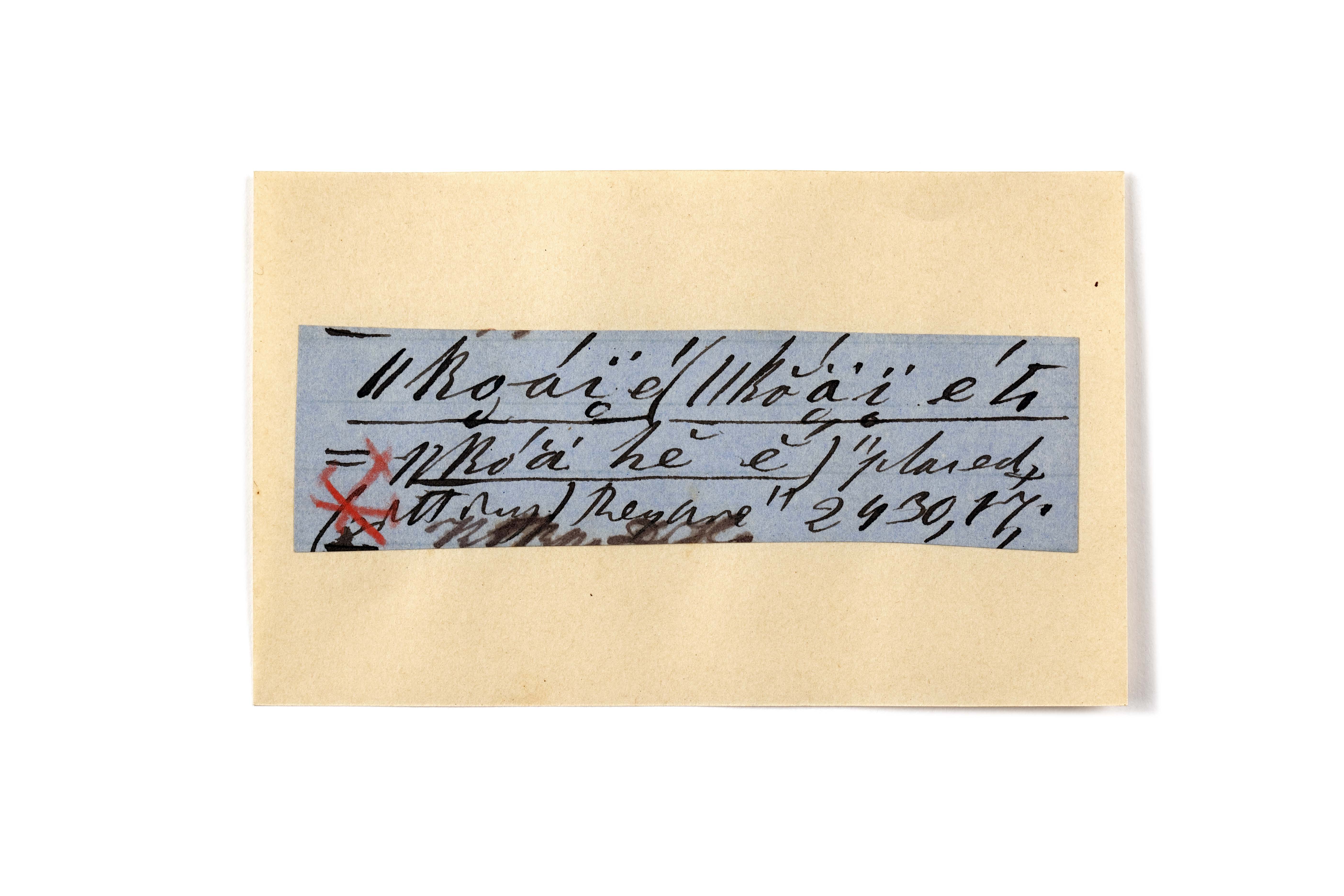 ink on blue paper glued on card
