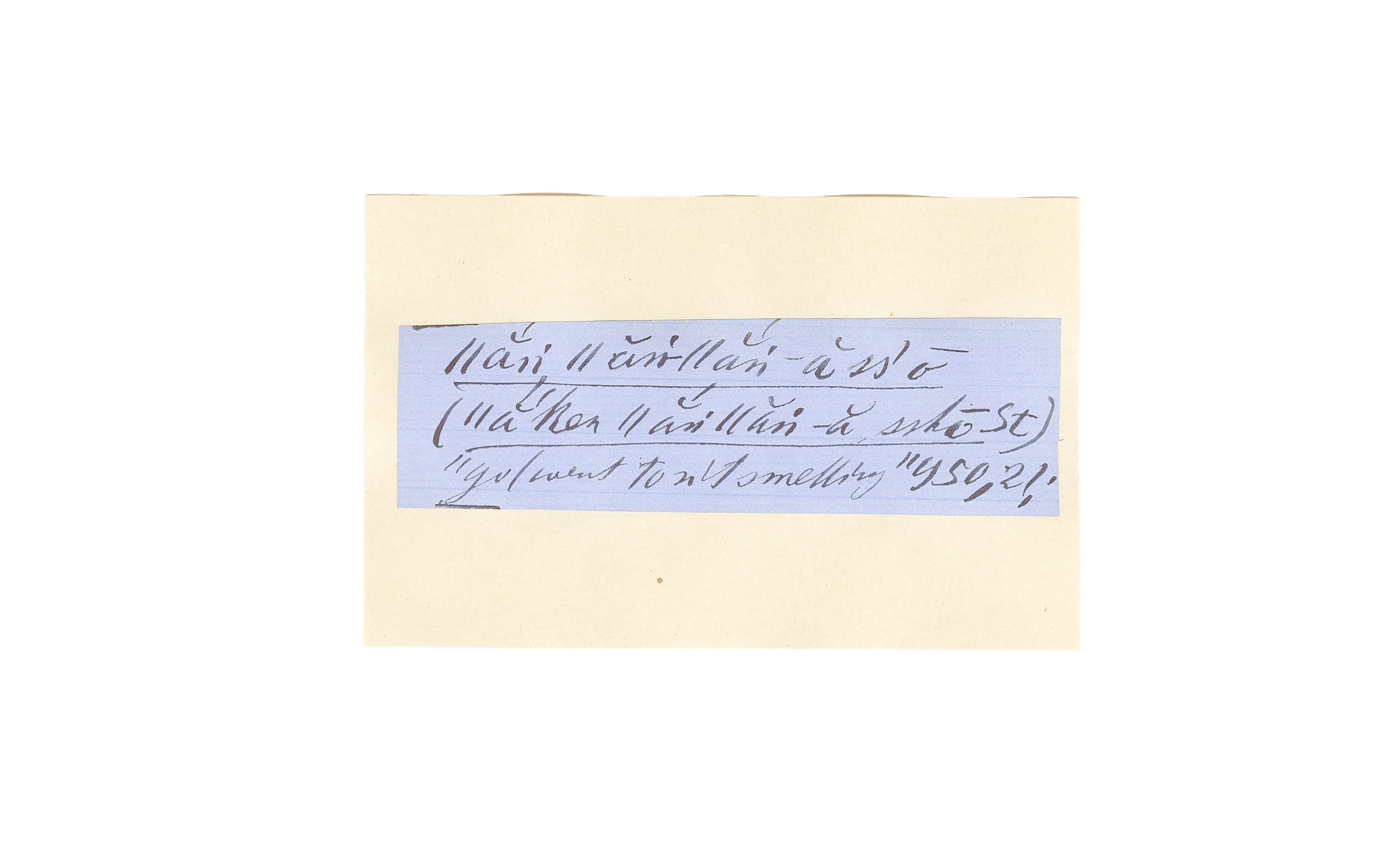 ink on blue paper glued on card