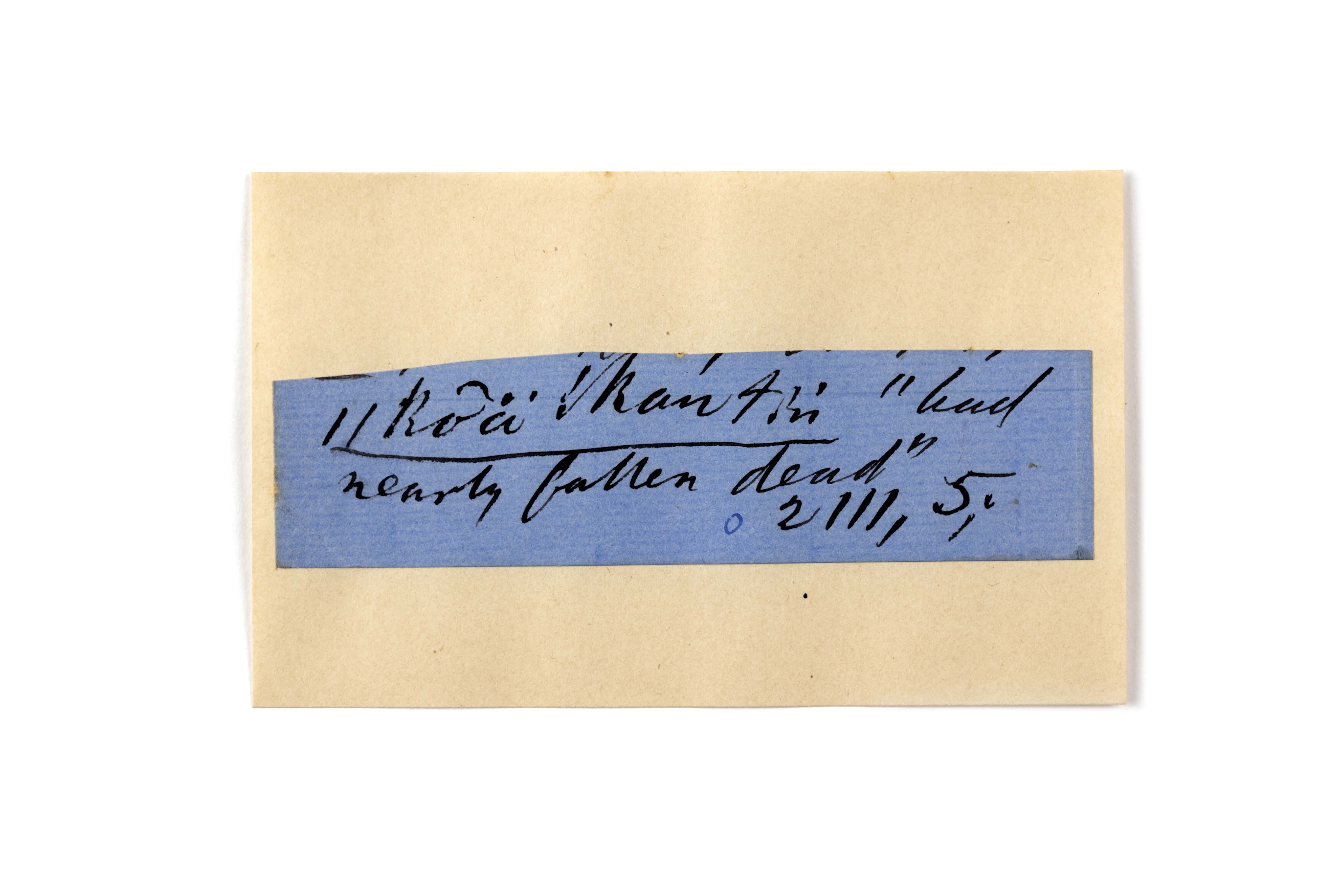 ink on blue paper glued on card