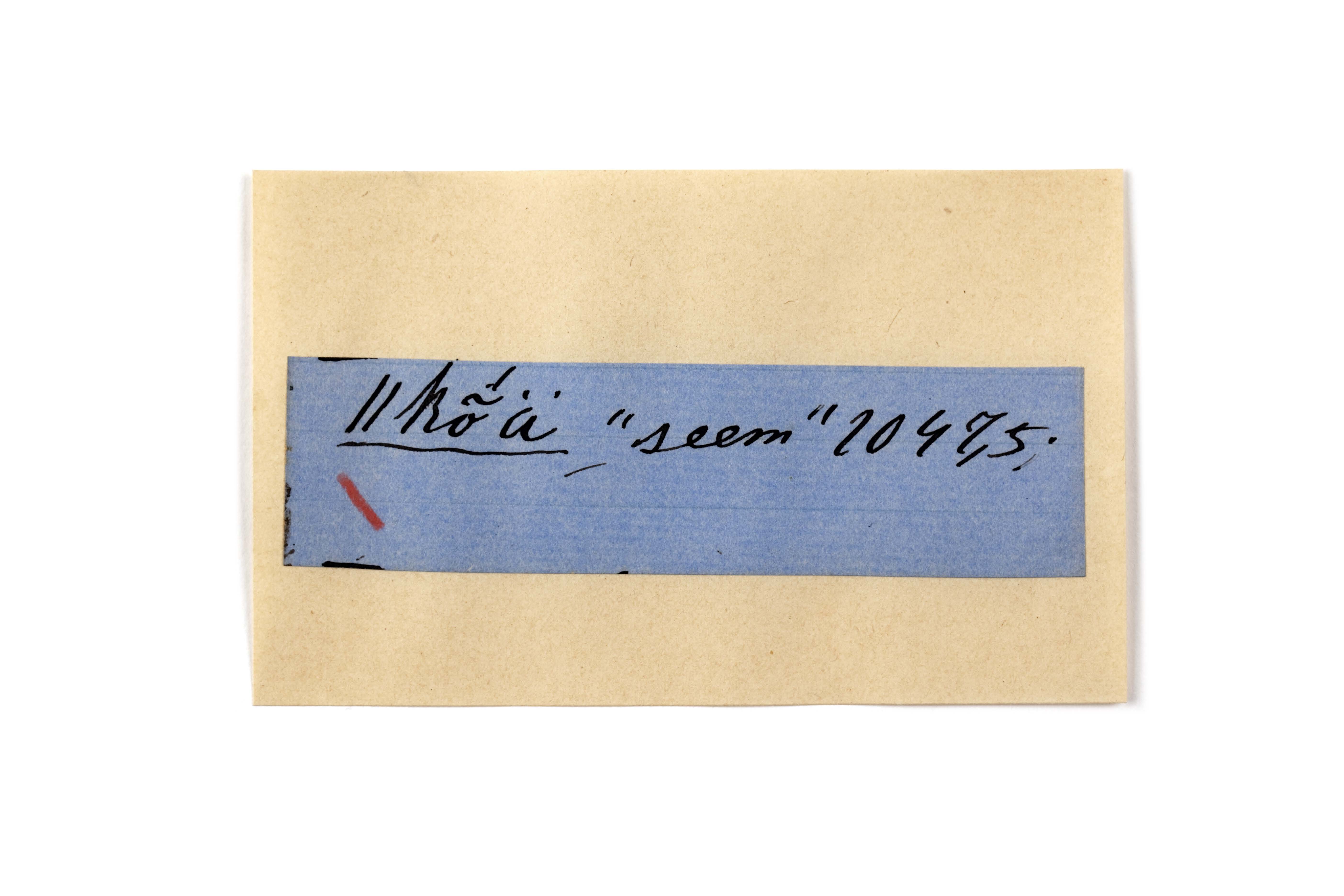 ink on blue paper glued on card