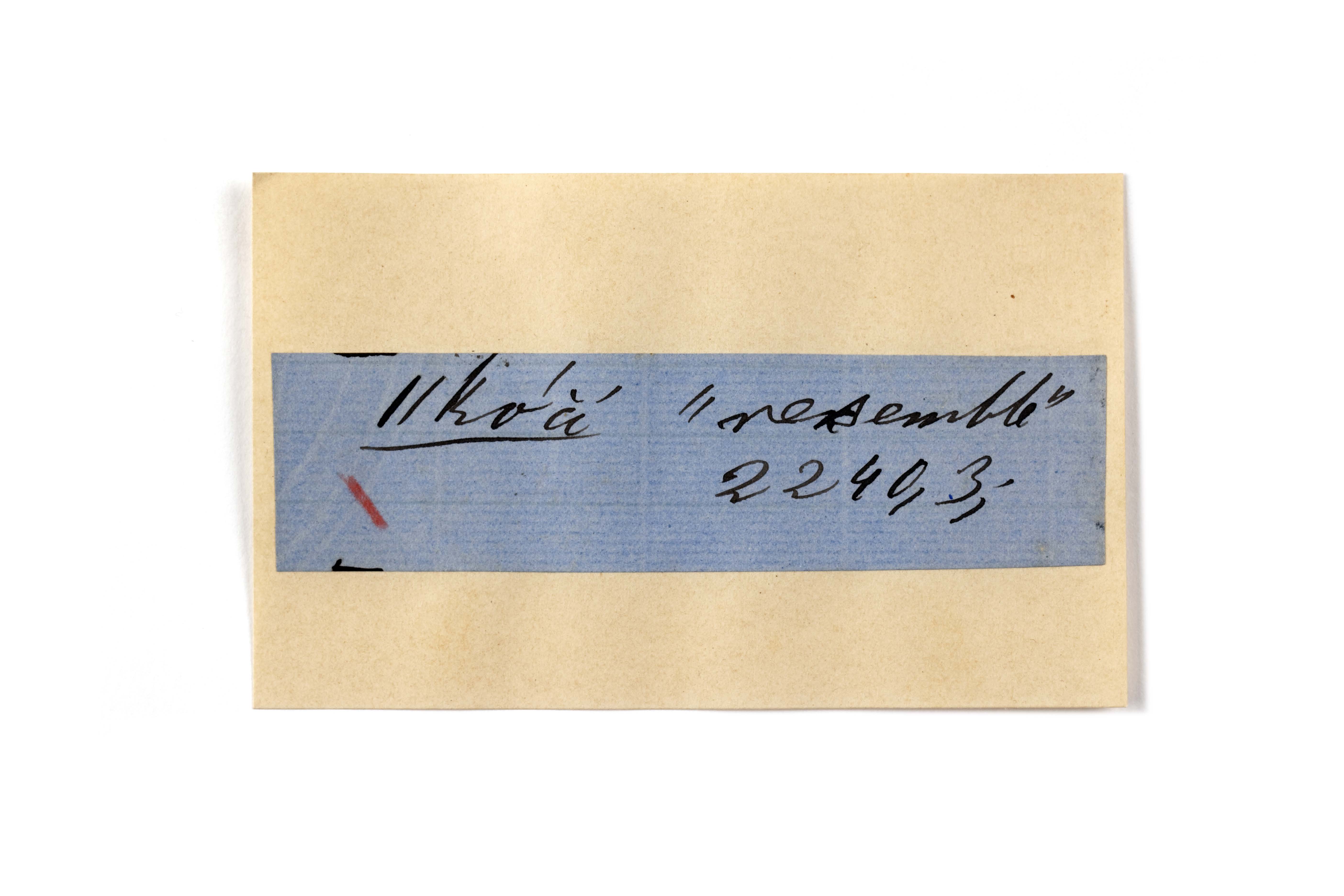 ink on blue paper glued on card