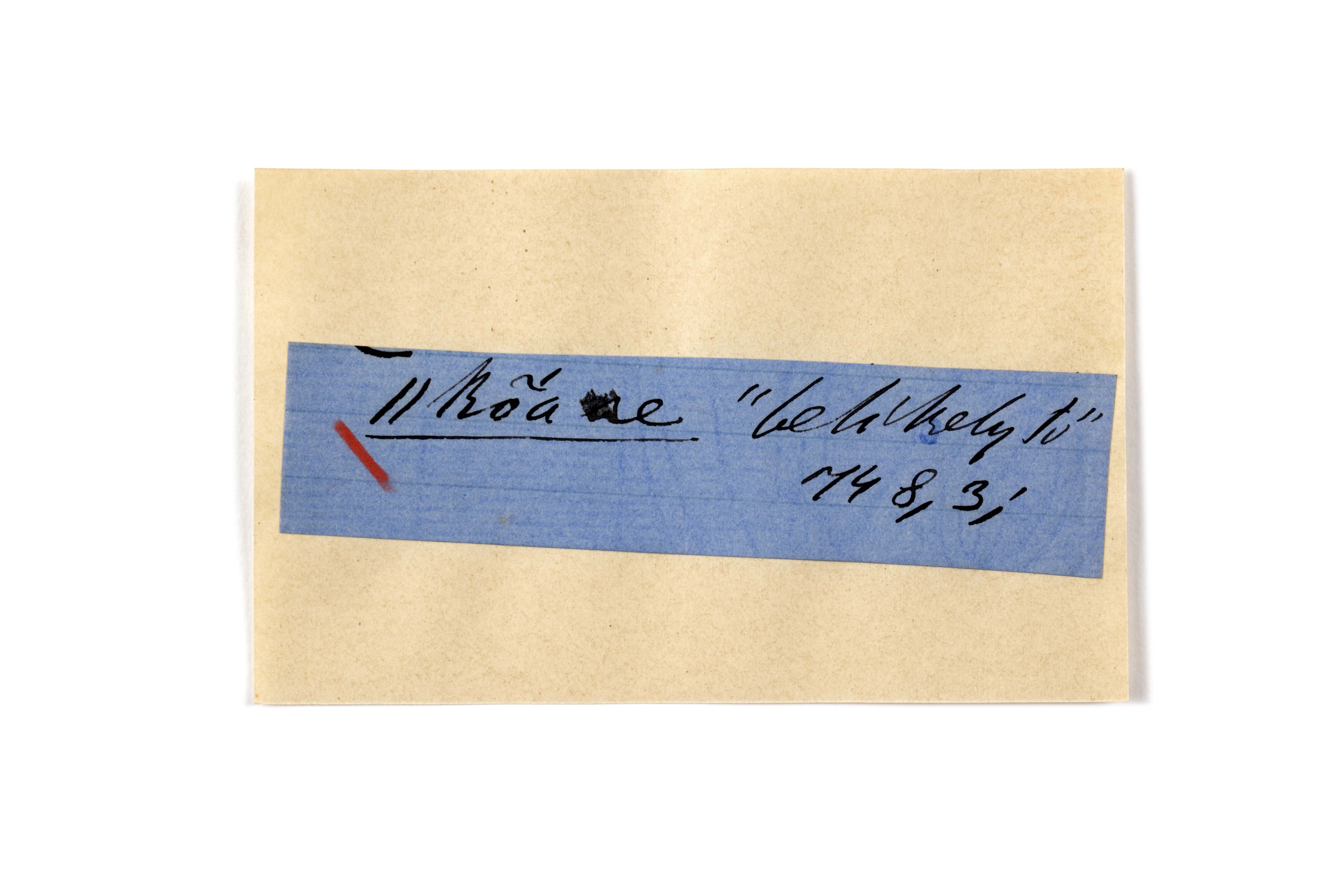 ink on blue paper glued on card