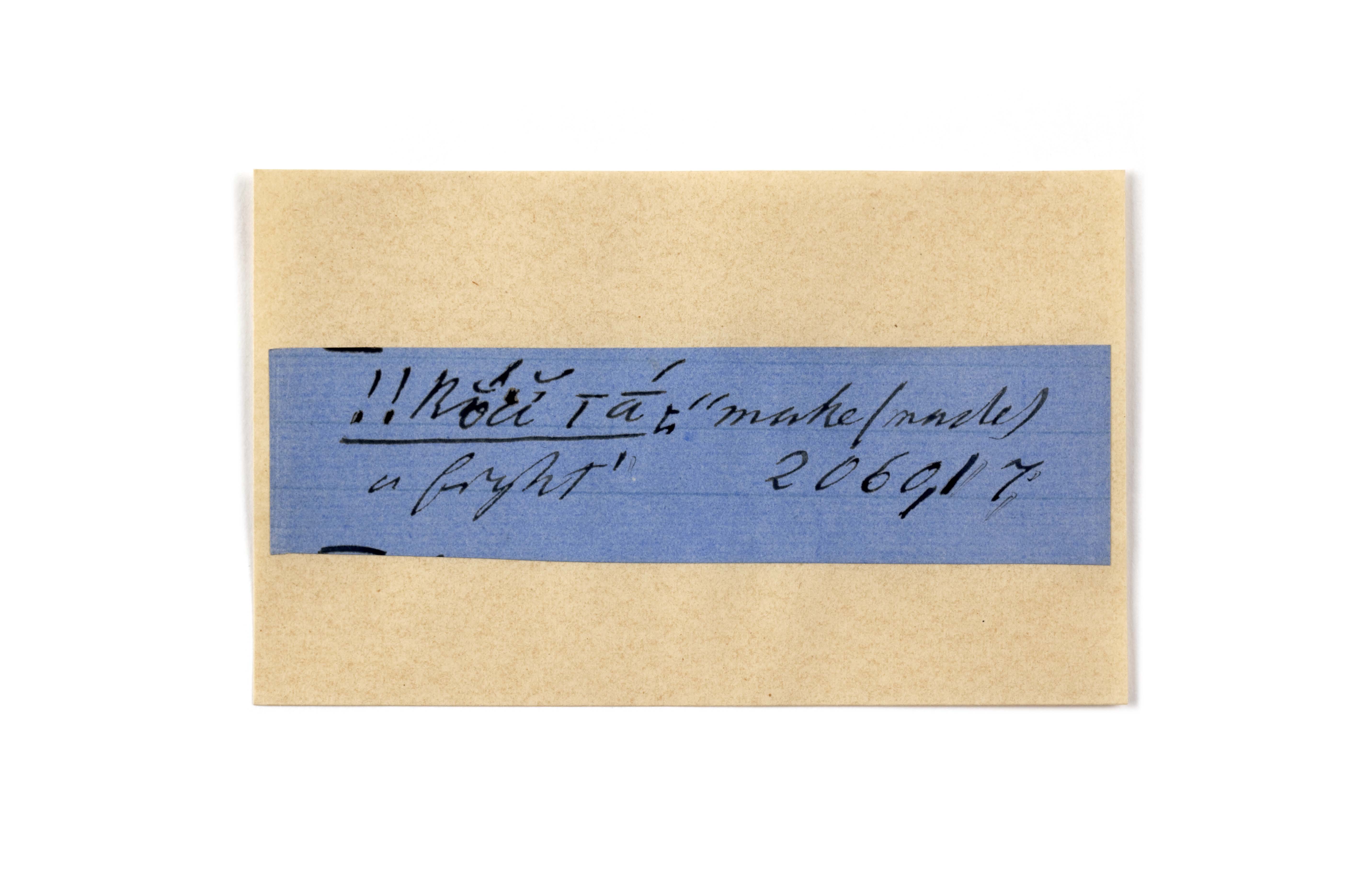 ink on blue paper glued on card