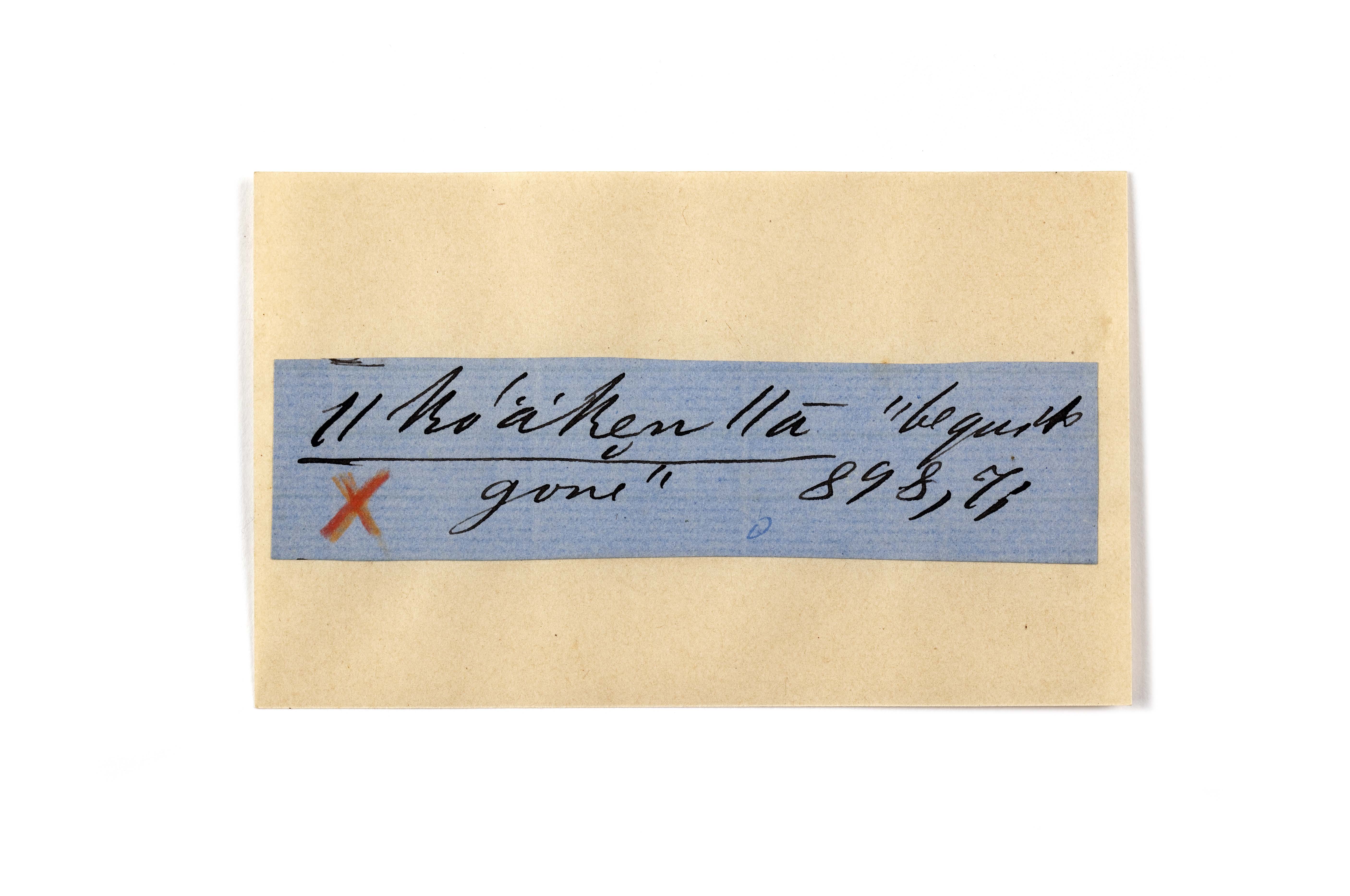 ink on blue paper glued on card