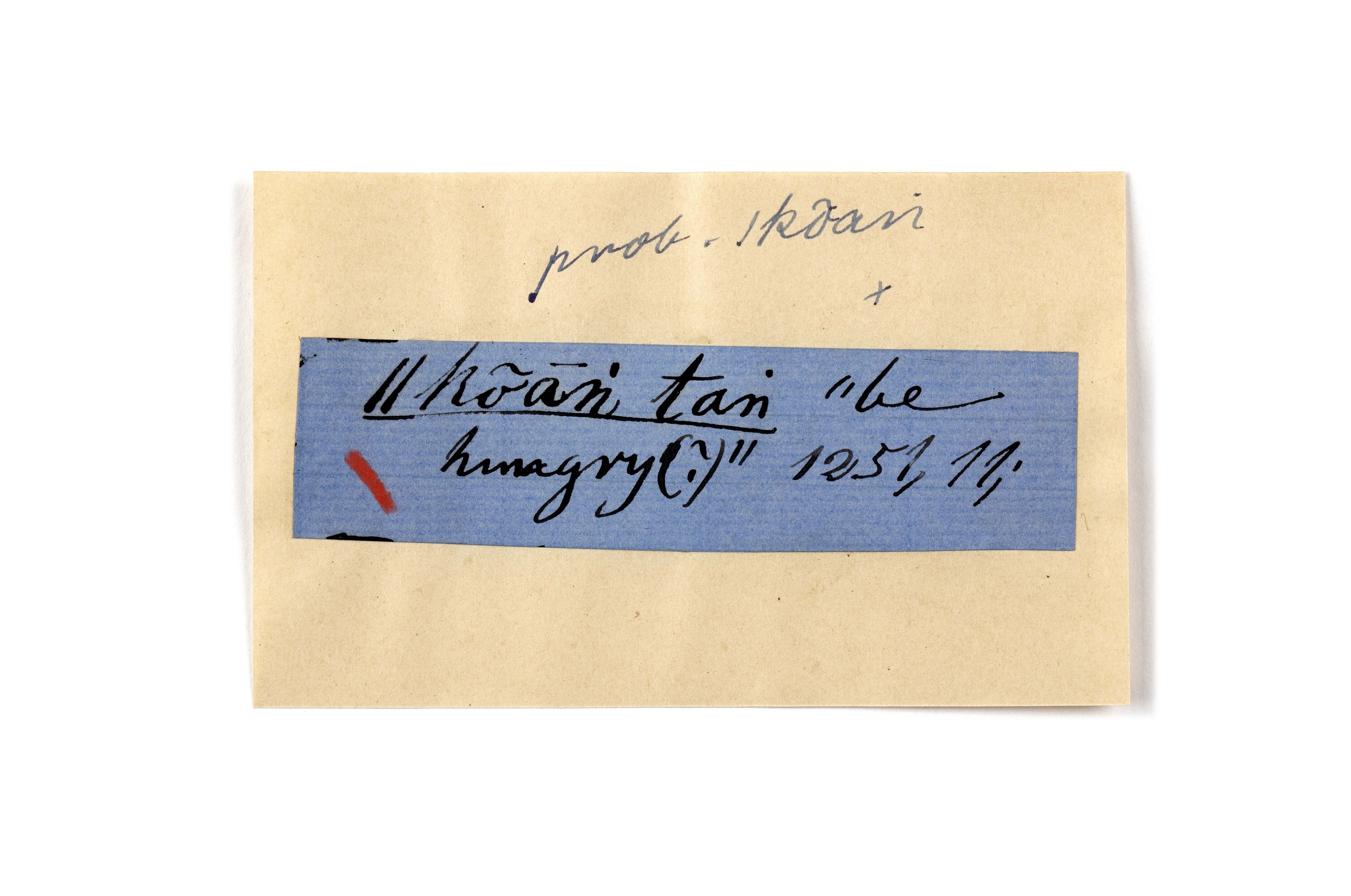 ink on blue paper glued on card