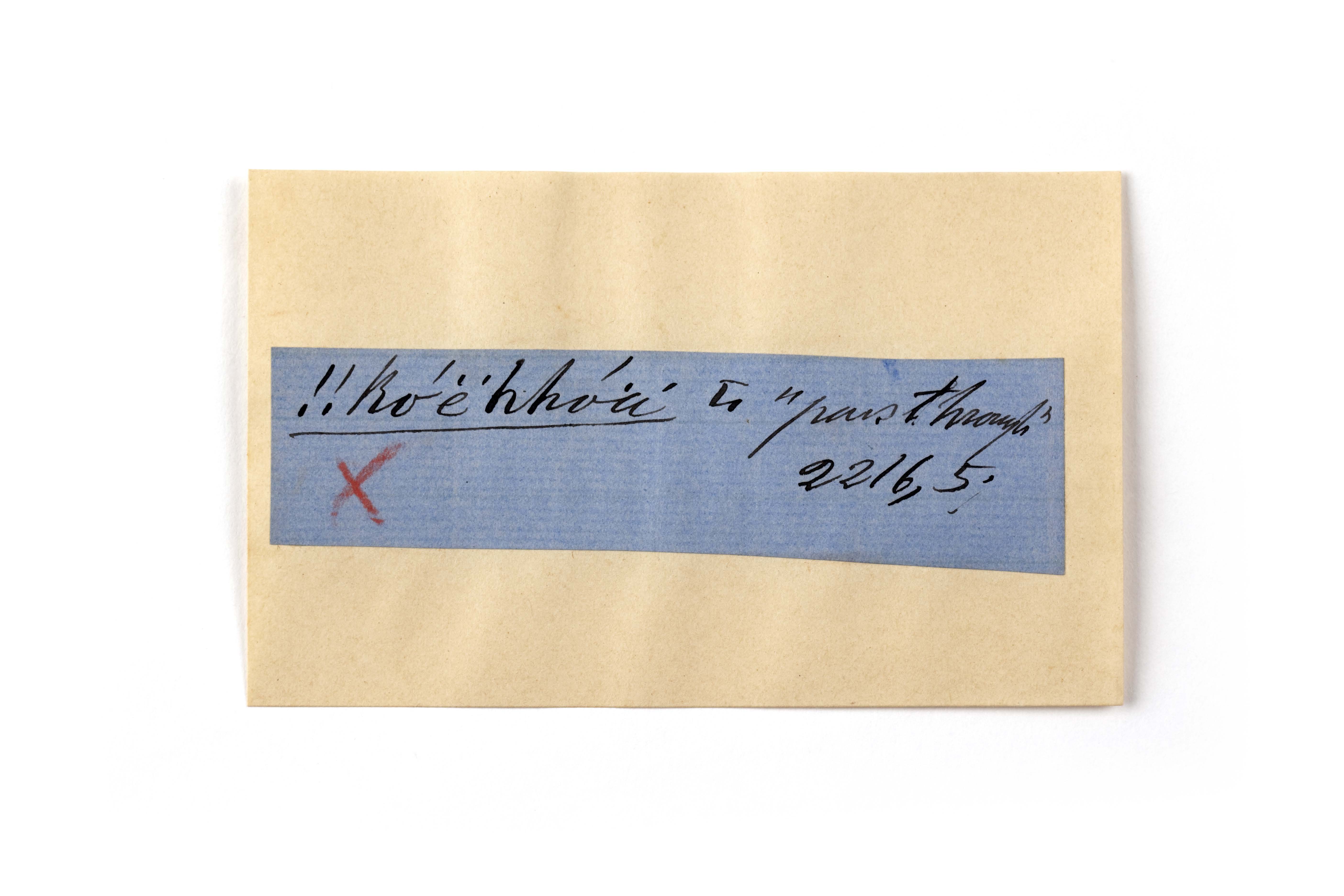 ink on blue paper glued on card