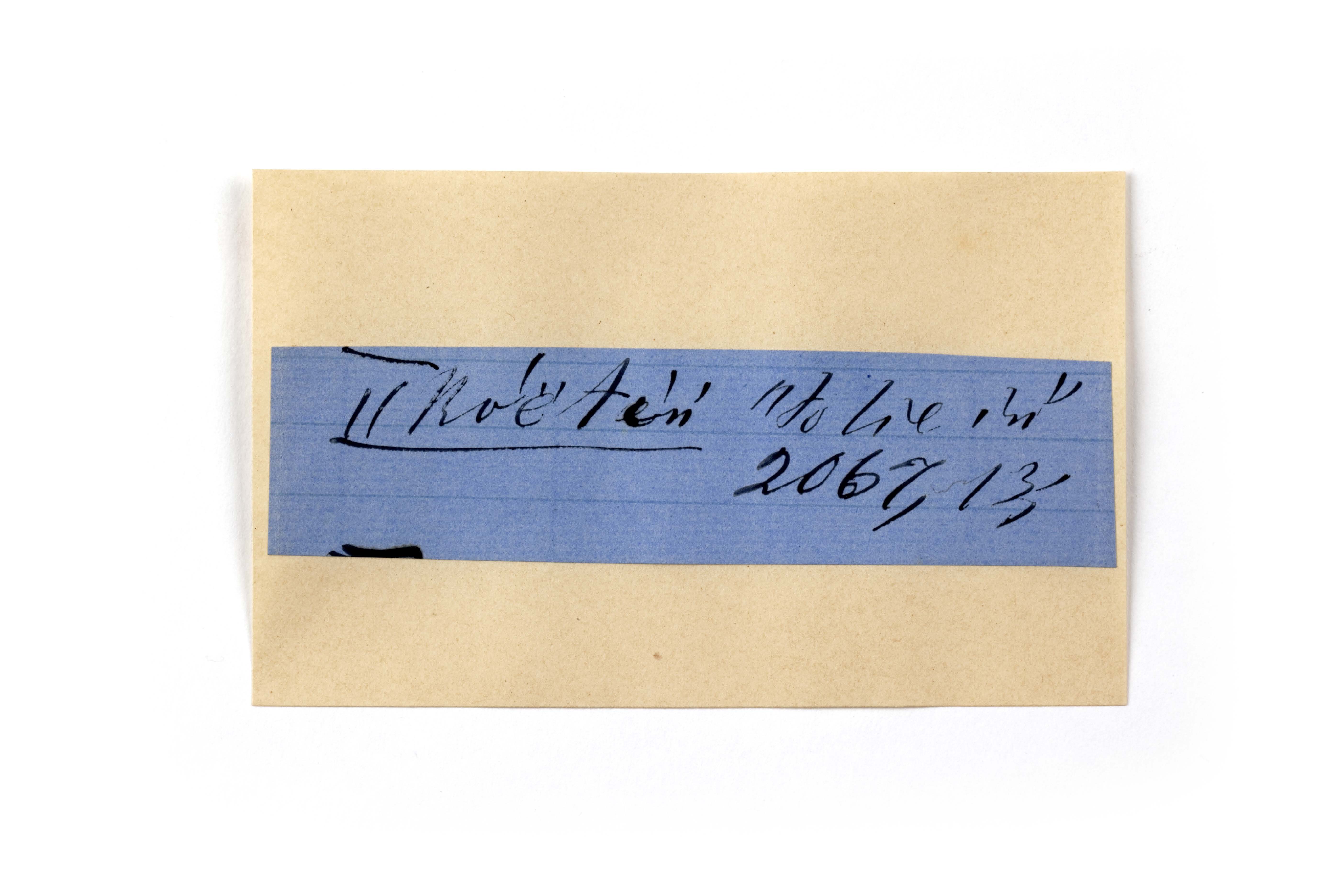 ink on blue paper glued on card