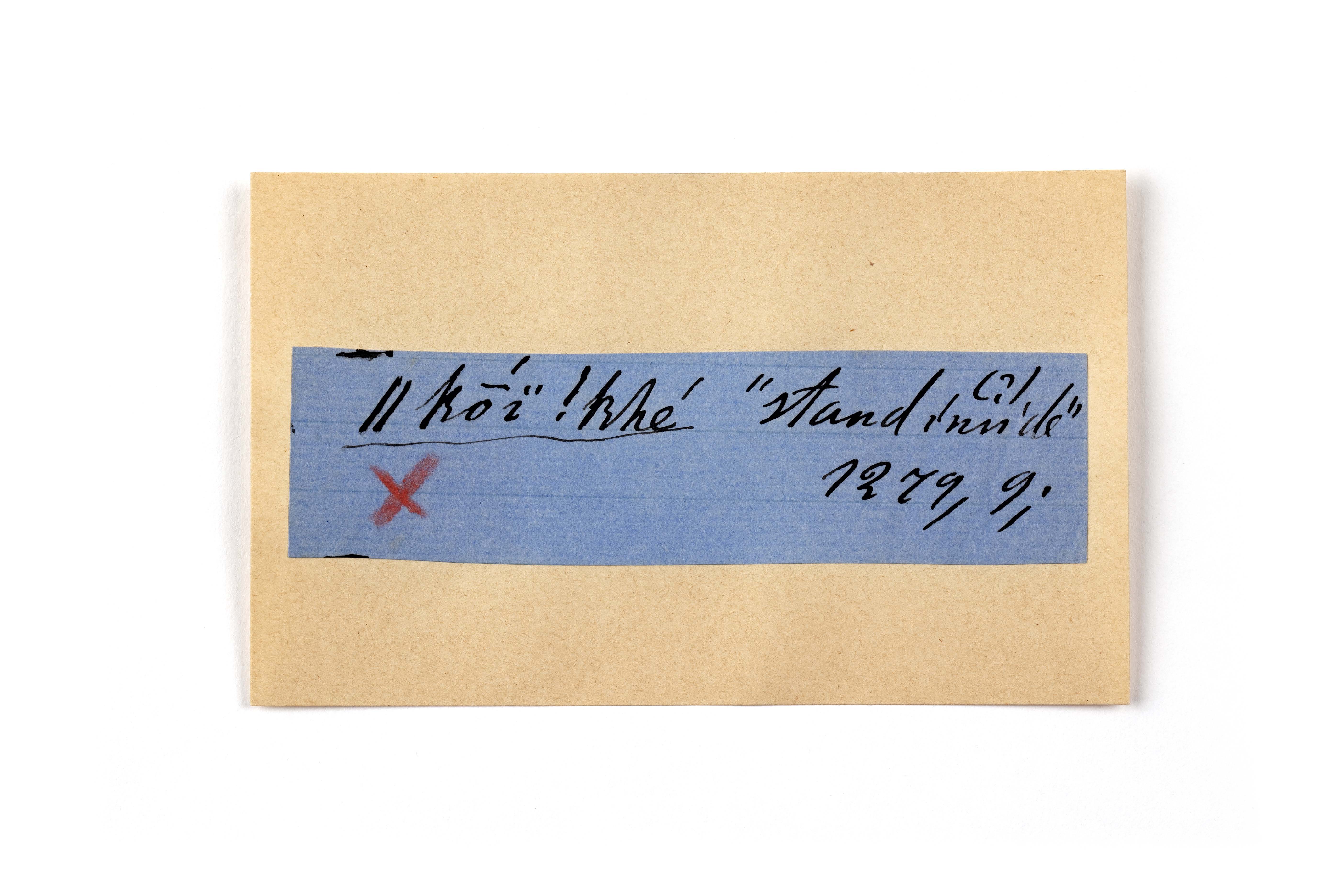 ink on blue paper glued on card