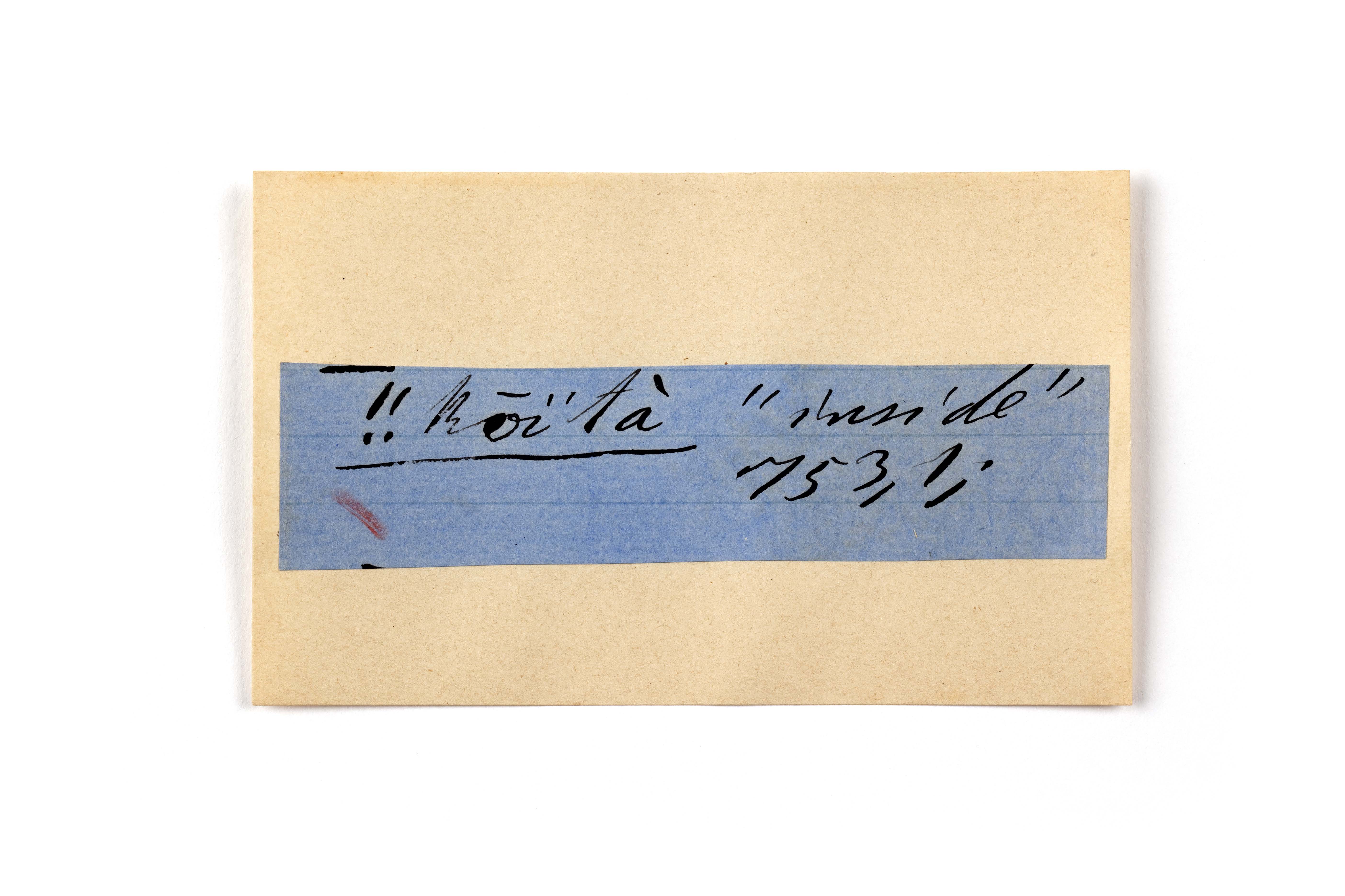 ink on blue paper glued on card