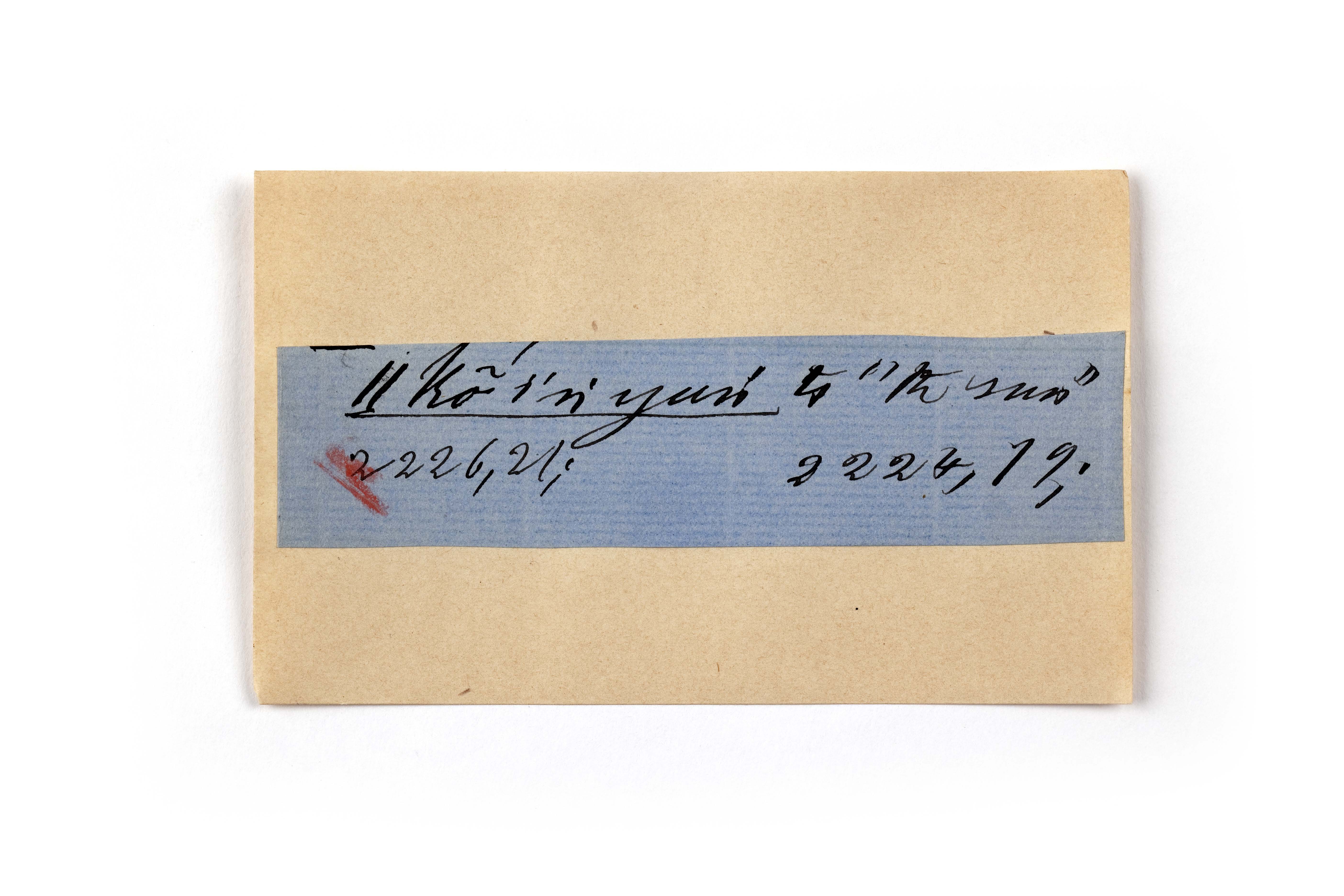ink on blue paper glued on card