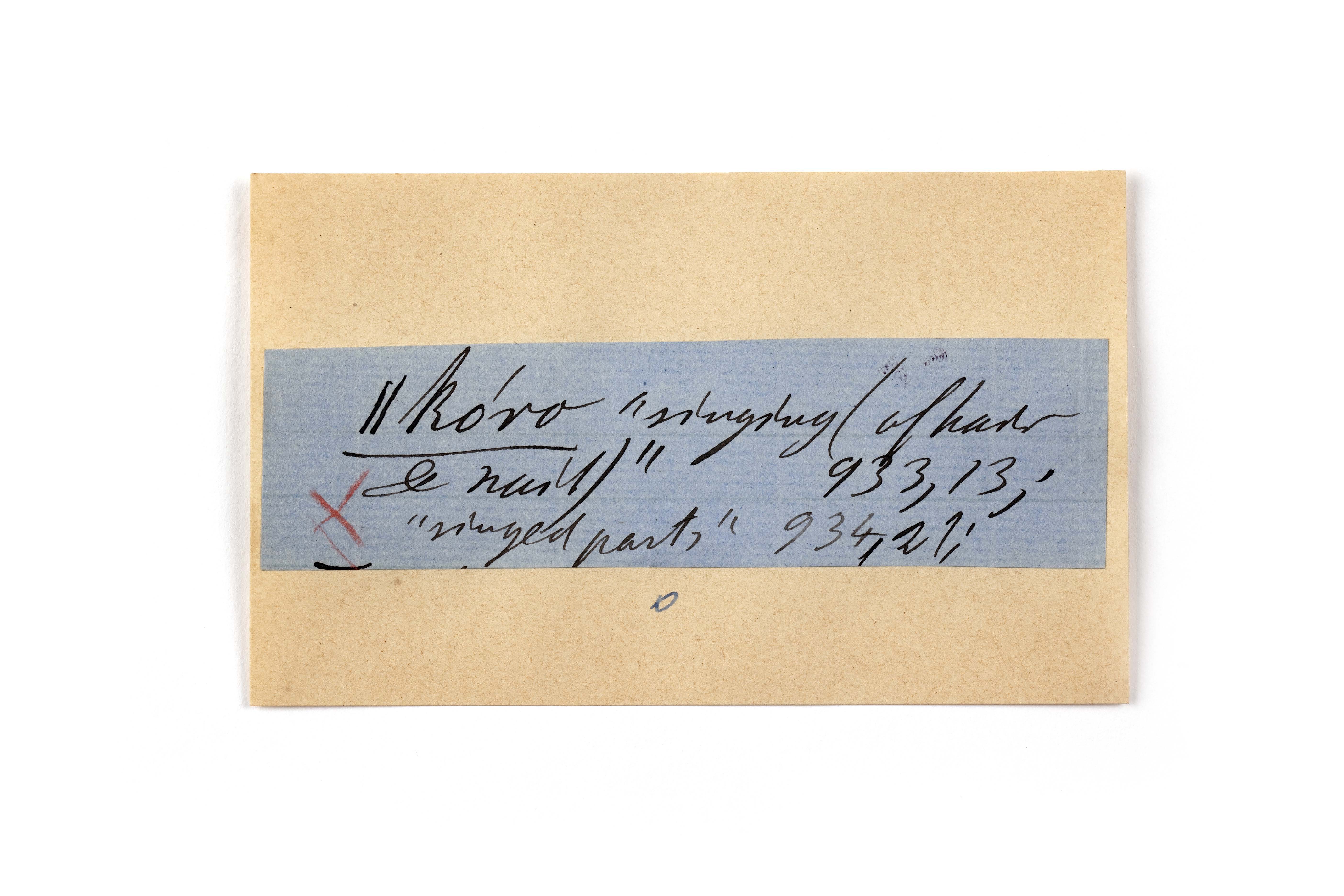 ink on blue paper glued on card