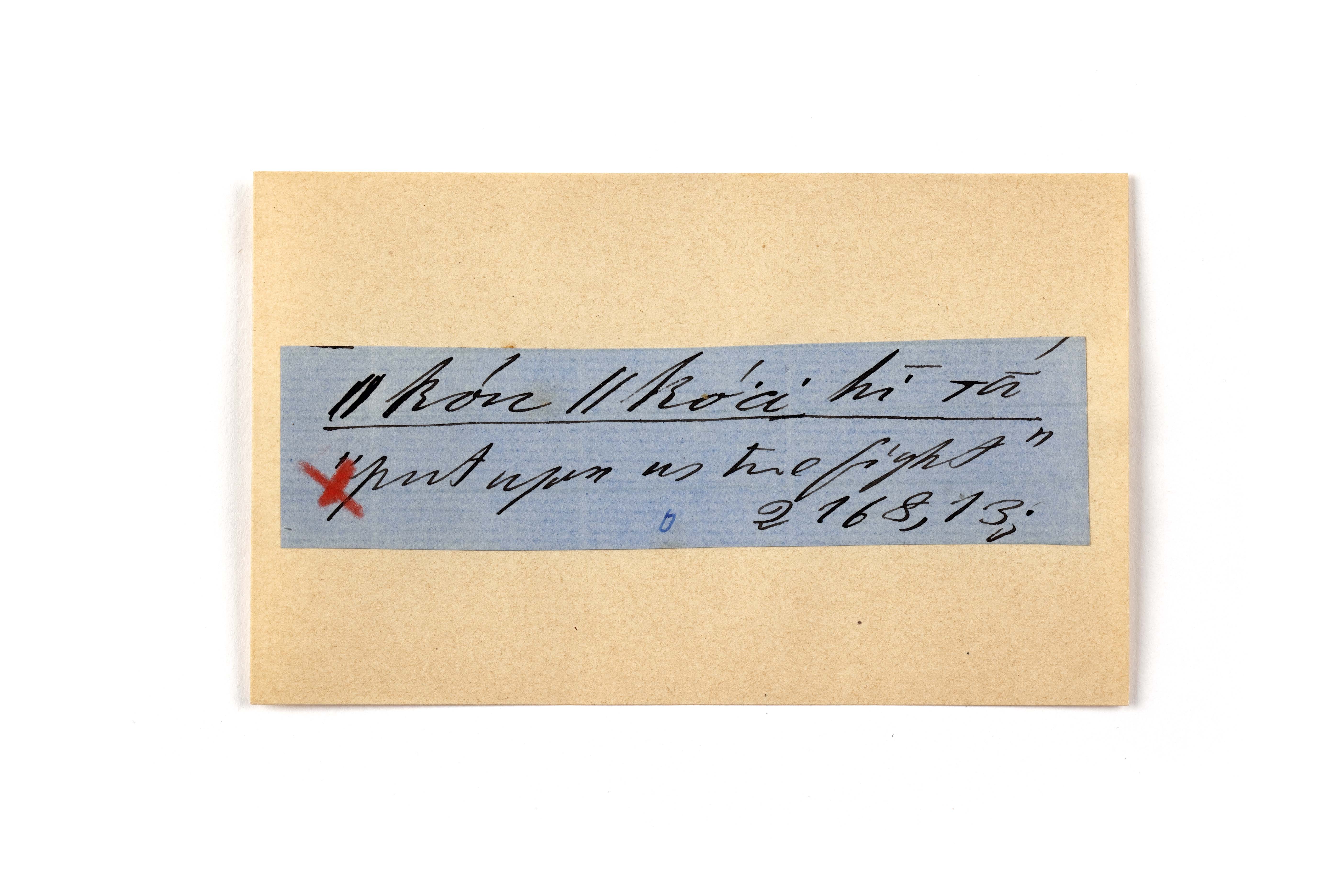 ink on blue paper glued on card